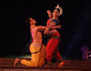 seamless and never look clumsy. Be it Gita Govinda ashtapadis in a dramatized form with Arushi Mudgal playing Krishna's role and other dancers turning into clusters of trees of kunj, bower of Brindavan, or flowing river and the bank of Jamuna, the group alignment was clean and left visual impact. With vast experience and the infrastructure at Gandharva Mahavidyalaya , the music composed by Madhup Mudgal, and lighting by long time associate Gautam Bhattacharya, the choreographic works of Madhavi succeed in lingering long in one's eye, recalling formations. In Kishore chandranana champu kavya of Kavisurya Baldev Rath, with 'K' and 'Kha' champu, the singing did not help in understanding the sahitya which was being transformed into kinetic language of dance. Radha's character was impersonated by different dancers besides Arushi, giving it a brilliant touch of suggestion, that all devotees are Radha, and Radha's infatuation for Krishna and attendant dangers which Radha does not fully realize, were danced in a beautiful manner. Radha's drawing images on sand thinking of Krishna, rubbing them off as soon as the sakhis make fun of her, her bashfulness, the images of snake charmer, madari, playing mahuri (musical instrument) and capturing the serpents, sakhis indicating Radha getting mesmerized by Krishna, not knowing that he has subjugated Kaliya, and fool as she is, attempts to sleep on a bed of swords (khanda), what else can happen to her except harming herself with sharp blades, she had better think twice about falling in love with Krishna! For Odiya community, these are songs they grow up with. For connoisseurs, knowing sahitya is a delight. Madhavi could resolve issue of the singing and make abhinaya numbers more appreciative with clear enunciation. Moksha, as usual had eye catching formations, but the final shloka in praise of Surya with cut light on back of the dancers praying to Lord Jagannath was exquisite and gave an extra dimension to the finale.