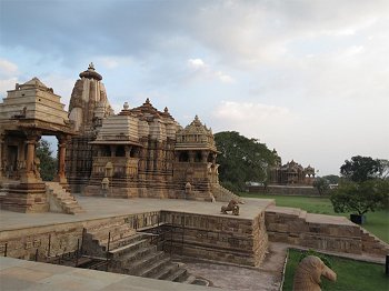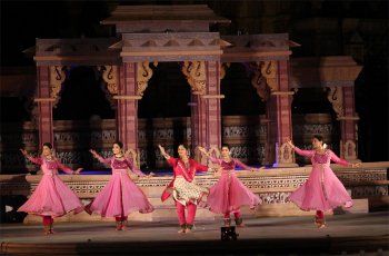 Khajuraho Festival of Dances - Dr. Sunil Kothari e-mail: sunilkothari1933@gmail.com Pics: Dr Manish Jhabak March 10, 2013 Now in its 39th year, Khajuraho Festival of dances has added several features along with the festival. When one approached the festival venue located on the Western complex of Chandella temples, one entered into an area which covered several arts. Right from the delicious variety of food of Madhya Pradesh, one moved on to see the looms, weavers weaving amazing patterns on saris, block prints, then a potter, who carved out beautiful shapes of earthen wares. A store next to it had publications on art. From there on one entered the Art Mart, a welcome addition for tourists to buy paintings. Adjacent to it was an exhibition of paintings by artists from Madhya Pradesh, arranged in an eye catching manner. But lo and behold! Soon after that, you face a mandapa titled Nepathya. At its entrance were life size mannequins of Kathakali characters in their full regalia. With symbolic make-up of paccha, katti, kari, chokanna thaadi (beards), with their magnificent crowns, they invited you to enter the world of gods and demons, and as it were they walked the earth again! On walls were hung costumes of Kathakali characters, ornaments, scarves with mirrors at the end, the gold coloured belts, ornaments for the waist, bangles, earrings, crowns, cloth for lower garment, jackets, interspersed with other life size statues of characters from the forest, with detailed descriptions given in labels. Facing them were statues of Mohini in its enchanting beauty, edakka instrument, maddalam and ornaments. In the centre was a round shrine where a painter was drawing dhuli chitra, painting with dry colours of the Goddesses, and the surrounding walls had photographs of Ottan Thullal and its variations, of Krishnattam, with characters like Devaki in a state of advanced pregnancy, Satyabhama, Krishna astride Garuda, Gopis dancing with Krishna and strange though it may seem, the Gopis had their faces outlined with chutti, white beard!