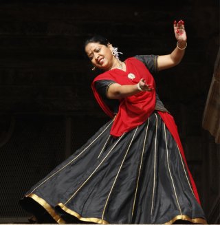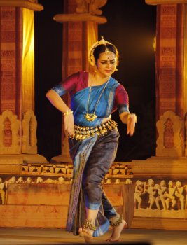 Dona Ganguly, disciple of Guru Kelucharan Mohapatra, presented Jatayu Moksha in Odissi. The male dancer Raghunath Das executed sharp movements intermittently. That did not jell well. The performance would have created more impact if Dona had not mixed contemporary movements by the male dancer. The story is well known. Impersonating Ravana, Sita and Jatayu, Dona displayed her sound training. Kelubabu's choreography has great appeal. Dona could also develop Rama's viraha with Kalidasa's slokas which have a great appeal. The star of the evening indeed was Uma Nambudripad Sathyanarayanan, a disciple of Chitra Visweswaran from Chennai. She did her guru proud. Beginning with Ananda Ganapati, Oothukadu Venkata Subbaiyer's prayer, with her graceful movements and an ability to cover the stage with typical Vazhuvoor bani, the utplavanas, jumps and going back swaying the body, she revealed the beauty of Bharatanatyam. In abhinaya to Purandaradasa's composition in 'nindastuti' format, asking "why are you not listening O Lord, you who saved Prahalada and also Draupadi," Uma displayed the emotions in a telling manner. With Madhurashtakam interwoven with tillana in Brindabani sarang composed by Visweswaran, Uma won the hearts of connoisseurs. The accompanists gave her excellent support. 21st February It was indeed a pleasure to watch Kathak by Tina Tambe, a disciple of Dr. Suchitra Haramalkar and Uma Dogra. Tina is enhancing her training through workshops of gurus like Pt Birju Maharaj, Pratap Pawar and other gurus. She has an arresting stage presence and succeeded in showcasing the salient features of both the Jaipur and Raigarh gharana in selected numbers in teen taal in vilambit and drut, performing with graceful movements. Shiva stuti in rupak taal was full of devotion. The finale with Hori created a joyous mood, playing with colour. Both in nritta and expressional numbers, Tina gave impression of her sound training. Dr. Suchitra Harmalkar accompanied her for padhant, recitation of mnemonics, and conducting the program. The impress of training under Uma Dogra was pleasant. It was also befitting that young generation gets an opportunity to perform at Khajuraho. French exponent of Mohiniattam, Brigitte Chataignier was asked to present her contemporary choreography of Ganga which she had successfully performed in a proscenium theatre with screening of Ganga river and other visuals. An attempt at uniting poetry, music and dance on an immense river, mythical, open to all whispers, echoes, a matrix of memories, with body undulating becoming water creating circulation of gestures et al , somehow even though it was for 35 minutes duration, the narration appeared too long and did not jell in the backdrop of Chitragupta temple. Accompanied by Mom Ganguly and a narrator, three of them had good co-ordination, but minus scenography, it did not leave impact. Instead Brigitte should have been asked to present Mohiniattam which would have given her an opportunity to display her command over Indian dance form. She has been living in Kerala for past twenty years dividing time between France and India and has imbibed the spirit of Mohiniattam in a delectable manner. I have seen her performances abroad and within India and would have loved to see her perform Mohiniattam. The contemporary choreography would better suit a proscenium theatre. ![]() Sharmila Biswas The finale group dance Gati Vilas inspired by a Sanskrit verse commonly chanted by the rural mridanga players of Odisha described attributes of ideal performer comparing her gaits, stances and energies, expressions with those of different animals. Striding the space with power and speed of the horse, regal stillness of the lion, gliding with lightness of a swan, body vibrating with magical melody of the cuckoo, beauty of dance of peacock, and precision of a hawk. The entire choreography is full of these images exploring various characteristics of birds and animals in Odissi dance vocabulary. Sharmila and her group's performance was the highlight of the evening. 22nd February The find of the festival was a young and gifted Bharatanatyam dancer Anwesha Das, a disciple of Urmila Satyanarayanan from Chennai. Young, vivacious and versatile, she charmed the audience with her command over technique. Mallari in Gambhira Nattai performed during Lord Shiva's procession, followed by Natesha Kavutam were precise in movements. Surdas's 'Maiya mori main nahi makhan khayo', with a twist in the end saying naughtily that indeed "maine hi makhan khayo" - I did steal butter - was delectable. She concluded with Tillana in Dhanashri, Swati Tirunal's composition enhancing the joyous feelings of a nayika dancing, listening to the enchanting music, as described by the poet. Along with other musicians, Swamimalai Suresh conducted nattuvangam with finesse. The Odissi duet by Purnashree Raut and Lucky Mohanty dwelt on Guru Kelucharan Mohapatra's exquisite choreography of the' janana,' a composition of Muslim poet Salbeg, who was a devotee of Lord Jagannath. They enacted the sancharis of Gajendra Moksha, Draupadi vastrapaharana and Prahlada, how the Lord saved his devotees when they prayed to him. Salbeg begs of the Lord to give him glimpse of his divine beauty. The enactment was restrained and pleasant. Hamsadhwani pallavi saw them in various scuplturesque poses and symmetrical alignment of movements. Their standing side by side facing each other, at times one standing behind the other sitting on the floor etc., were imaginative. Finale with Devi Durga in her benign and ferocious moods was effectively enacted by Purnashree, whereas Lucky as Mahishasura displayed the valorous form. With Om Namah Shivaya, with formation of chaturbhuja image they concluded their presentation. I have seen them earlier at Mukteswar dance festival and both are doing well at Raipur in spreading awareness of dance. In terms of aharya, costume and head ornaments, Purnashri would do well to redesign it, so it does