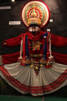 Both Kathakali exponent Kalamandalam Piyal from Kolkata and Mohiniattam exponent Mandakini Trivedi from Mumbai, who had been commissioned to mount this exhibition, had taken pains to bring alive the world of Kathakali along with an exquisite small book on Kathakali written by them. Some colourful paintings of make-up on bamboo were excellent. The entire concept is to usher the onlooker into the mysterious world of dance. Previous year, the Sattriya dance form and its environs of Assam monasteries, Sattras, were introduced. For the coming year, the organizers are planning to mount similar exhibition introducing Odissi dance. The organizers could make arrangements for guided tours and keep timings between 10am and 12 noon and again from 4pm onwards, so that tourists who visit temples can go there before it gets too hot.