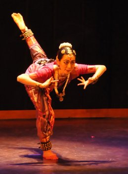 The opening Odissi presentation was by German dancer Gudrun Martins trained by Sangeeta Das, a disciple of Durgacharan Ranbir. Gurdrun has an arresting stage presence. Tall, well built and with a fine figure, her movements were neat and perfect. That she is a foreigner never bothered the audience. Inspired by the sun god at Konark temple, Gudrun presented Suryashtakam as taught to her by Sangeeta Das whose guru Durgacharan Ranbir has interwoven arresting images in the choreography. The effulgent glory of the sun, its all pervading light, known as Adi Deva, one riding with seven horses in a chariot Saptashva, one who has triguna, the three qualities reminding devotees of Brahma, Vishnu and Maheshwara, one who removes sins, whose sahasra jihvas, thousand tongues (rays) illuminate the universe, to that Surya devata, the devotee says: Pranamami aham devam namostubhyam. Gurdun held poses with balance, took in a trice yogic postures, bent backwards, letting her head touch the raised foot, took yogasana pose with both hands touching the ground, danced with pirouettes in exact tala and created a favourable impression. All dancers performed to recorded music, but the intensity with which Gurdun performed one never felt that the music was recorded. I understand that she runs her own institution in Germany and regularly visits India to study further. She did her guru proud. ![]() Gudrun Martins ![]() Suhasini Dhanki The surprise of the evening was Suhasini Dhanki, a young disciple of Dr Sandhya Purecha, who gave a delectable exposition of Bharatanatyam, for which her guru had chosen the Varnam 'Danike' of the Tanjore Quartette Sivananda's composition. Even though she performed it within a time span of twenty minutes, Suhasini left an indelible impression of her excellent training displaying her command over the Tanjore style, using of late rarely seen adavus, and nritta, reflecting the storehouse of valuable legacy Acharya Parvati Kumar has left behind. Young, attractive, personable and with eyes registering expressions effortlessly, Suhasini danced the sanchari for Mahadeva, who protected Markendeya, when Yama used Yamapasha, noose, and Lord Shiva sent Yama back. When an elephant was let loose, Lord Shiva killed him and adorned himself with the hide. The event is immortalized in Krittivasa sculpture. As a nayika, Suhasini created a favourable impression, winning rounds of applause for her impeccable Bharatanatyam. Kudos to Dr. Sandhya Purecha for training her so well. ![]() Sanchita Banerjee