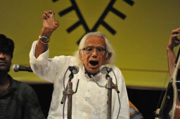 1st International Convention of SPIC MACAY (20th-26th May 2013) - Dr Sunil Kothari e-mail: sunilkothari1933@gmail.com Photos: R Sreenivasan May 31, 2013 It was a sheer pleasure and a great experience, a lesson in learning attending 1st International Convention of SPIC MACAY during its 36th year celebrations at Indian Institute of Management, Kolkata. In the sylvan setting of IIM-C, its sprawling campus, with several small lakes, many residential hostels, halls, clean pathways, connecting bridges, far away from the madding crowd, at Joka, at a quiet distance from centre of Kolkata, it had a large presence of more than 1600 participants and over 200 artistes! Delegates from Pakistan, Poland, Hungary, Bangla Desh and from different parts of India had converged for a week with an unusual work schedule which prepared one for so many areas one was unaware of. On account of many other engagements and travels abroad during the month of May for the past nearly 18 years or so, I had missed these unique annual events so competently organized by SPIC MACAY and under the leadership of its Founder and Chairman, Dr. Kiran Seth. A self effacing person with an ability to inspire a generation of young students, social workers, educationists, teachers, professors, artists, connoisseurs, art patrons, agencies which support the SPIC MACAY Movement, Dr. Kiran Seth has become a legend in his own lifetime. A real karma yogi, he has inspired a core of people who work silently and with complete spirit of volunteerism, not expecting any rewards, the like of which I have not come across. Reams have been written about SPIC MACAY and its amazing reach throughout India, its remotest villages, innumerable schools, where legendary artists like Pt Ravi Shankar, Ustad Bismillah Khan, Pt Bhimsen Joshi , Prof T.N. Krishnan, Pt Birju Maharaj, Kalamandalam Raman Kutty Nair, to name a few, have offered their art to young school going generation, adults, college going students, and generated through SPIC MACAY Movement an awareness of Indian cultural heritage in its myriad forms be it classical music, Hindustani, Carnatic, folk, Dhrupad, vocal, instrumental with a mind boggling variety of Indian art forms, dance forms, their topmost exponents, who introduce the art forms to young students, explaining its intricacies to them in a most friendly manner, leading them to appreciate nuances of the classical forms of dance and music. A voluntary body, it has created wonders. When I talked to some of the participants, dancers, classical musicians, who conduct workshops known as intensives, I gained some idea of a voluntary nature of this institution. A dedicated team of workers take care of several aspects of such a mega event. Indeed someone said that such an organization is a case study for management gurus. I had attended the convention held at Dehradun in 1994 and have distinct memories of the schedule. Now it has expanded many folds and both in its scale and scope it is extremely heartening even when it appears overcrowded. What it offers you and if you participate, touches you and remains with you as a lifelong experience. You may get involved and carry on your own and you may benefit without knowing how it all began. For instance, Naad Yoga, the yoga of sound. Early around 4am, we assemble for Naad Yoga, recite the swara along with the note on tanpura, hold breath, release breath, sit for an hour and with the first ray of the sun, the yoga concludes, giving you an experience of calm and peace. Dhrupad rudra veena player Ustad Bahauddin Dagar conducts it, Dr. Kiran Seth joins, we sit cross- legged and realize what a wonderful way it makes one aware of the power of sound and yoga. The other unusual sessions were conducted by Professor P.L.Dhar, a professor of Mechanical Engineering at IIT Delhi, who has been striving to spread the knowledge of continual practice of self-awareness to sila, samadhi and pannya, as taught by Gautam Buddha. He conducted an intensive on 'Mindfulness' making students sensitive to the higher dimensions of human existence. Fascinating were yoga sessions. Swami Tyagaraj and Swami Yogapratap from the Bihar School of yoga conducted intensive yoga sessions. A large number of participating students displayed praiseworthy enthusiasm. To watch students making a beeline for it was extremely heartening. ![]() Pt Birju Maharaj On arrival on Sunday the 20th May from Delhi, with unforeseen delay of Air India flight, we missed a few important announcements, but made our way to the main auditorium to witness performances by Pt Birju Maharaj. He has great charisma and has won over his audiences, be they students or ardent fans with his unique ways of performing delicate, small pieces, laced with humorous comments and investing them with superb laya and movements. Birju Maharaj's Kathak has reached its zenith and to describe the maestro's charms will be like 'gilding the lily.' His prime disciple Saswati Sen explained the intricacies of Kathak and performed with élan. She was joined by Luna Poddar and along with Birju Maharaj the two performed, giving glimpses of Kathak to a full house, students and adults sitting on the floor, maintaining pin drop silence. This was wonderful and throughout the week all sessions were after initial noise turned into such peaceful sessions that one enjoyed whatever was presented with great delight. We writers were all accommodated at Tata Hall hostels along with musicians, dancers, few key organizers and painter Anjolie Ela Menon. Therefore when we went to the dining hall for morning breakfast, we were able to meet each other, sit together, exchange views, latest news in the art world and enjoy these meetings. Young Koodiyattam exponent Kapila Venu, Dhrupad musician Ustad Bahauddin Dagar, Pelavi Naik, Astad Deboo, Chitra Visweswaran, musician R. Vedavalli, Parvathy Baul, yoga teachers, dance and music intensive artistes Uma Rama Rao for Kuchipudi, Sharmila Biswas for Odissi, Malabika Mitra