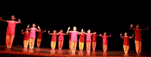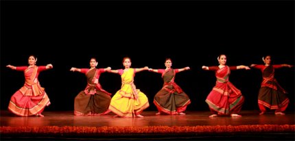 Lynne recalled the wonderful support late Shankar Nag, the film actor and a friend and his wife Arundhati Nag, an established well known theater actor, gave to Protima from the word go, when Protima established Nrityagram at Hesssarghatta. Arundhati was the MC for the Vasanta Habba, which Protima used to organize year after year. Recognizing presence of others who have been long associated with Protima and Nrityagram, she welcomed me, as I have been associated with Nrityagram from the beginning and regularly visited Nrityagram. Then she introduced Upeka, the daughter of the legendary dancer Chitrasena of Sri Lanka. Upeka has been following Nrityagram dancers since past ten years with their memorable collaboration of Sri Lankan dancers and Odissi in 'Samhara.' They are now a family of Nrityagram. Lynne also welcomed 'grandfather,' the Minister for Petroleum and Energy, Mr. Moily, whose grand daughter Siri Moily is learning Odissi at Nrityagram. Lynne had to go to the lights booth for the lighting and Surupa introduced Lynne's mother June Fernandez, who looks after Nrityagram round the year and in particular when Surupa, Bijayini, Pavithra and Lynne are travelling within India and abroad. There were many elders, artists, admirers, supporters and parents of young dancers studying under Bijayani, Pavithra and Surupa, who were warmly welcomed during the evening. The purpose of this annual show was to let people know what training is given at Nrityagram and how dancers of various age groups progress. Today, both Surupa and Bijayini along with Pavithra have become internationally famous as celebrated Odissi exponents from Nrityagram. Said Surupa, "We have not known anything besides dance and we live our lives dancing, practicing, choreographing, teaching and of course there is little in terms of fortune, meaning money, but we carry on. And this evening we wish to share with you what we do at Nrityagram in terms of teaching and performing." At the beginning before starting introduction, to share the spirit of fun that Protima always used to have, Surupa asked if anyone present would share a joke. None volunteered. So Surupa narrated a funny incident. She and her father who was in the military, were at a club sitting besides a Sardarji, who was telling about his family members, some were engineers, brilliant information technology experts and so on and spoke nearly for thirty minutes non-stop. Then realizing that Surupa and her father were listening politely to his non-stop talking, he asked what Mr. Sen did. He said, "I am an officer in the army and my daughter is a dancer." The Sardarji was struck dumb and did not know what to say. So he said, "Not to worry, sir, after some time sab thik ho jayega!" (Meaning the daughter who is learning dance would be a normal girl). But the girl did not give up dancing. She became a famous dancer and continues to perform and teach. Surupa teaches some fifty students twice a week at Bangalore city, some continue, some give up, and the strict training makes them aware of 'their muscles they did not know how they worked' and the physical exhilaration they experience makes them continue to go through the grill. ![]() Tiny tots The dancers totaling fourteen in age group of 15 and above, showed basic stance, turned into circles, showed how they lifted their bodies in jumps, extended their arms and with perfect synchronization executed Odissi movements. They gave glimpses of their training and preparations for performing dance numbers. Some of them like Urmi, Akshiti, Prithvi, Shravasti, Arati, Jena, Prabha to name a few danced with others with prior rehearsals in unison. Surupa explained and showed how gradually a dancer is trained. What appeared simple developed into complex time cycle, rhythm and was full of joyous feelings. A prayer in praise of Lord Ganapati was performed by a group of fourteen dancers. The original choreography by Guru Kelucharan Mohapatra was restaged by Surupa. The flawless performance by the dancers striking sculpturesque postures, describing the attributes of dancing Ganapati were imaginatively choreographed in a group presentation. When one saw it, one immediately admired the patience with which the step by step training was given and movements were grasped by them. When they completed the prayer and stood in half crescent formation on stage, one saw their disciplined manner of standing on the stage and also imaginatively choreographed exits. ![]() Bijayini Satpathy ![]() Bijayini, Surupa, Pavithra