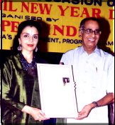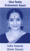 Bharatanatyam dancer, teacher and writer Nandini Ramani received the UGADI PURASKAR 2002 AWARD in recognition of her work as Secretary of Samskrita Ranga, for directing and producing authentic Sanskrit plays on stage. Under the category of Child Prodigies, Bharatanatyam and Kuchipudi dancer Sai Lakshmi Manasa of Vizianagaram, Bharatanatyam dancer Ramya Murali of PSBB School in Chennai were the two youngsters who received the award. |