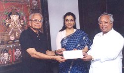 The Dhananjayans received the prestigious DR. RAJA SIR ANNAMALAI CHETTIAR AWARD for excellence in Fine Arts for the year 2002. Rs.50, 000/- cash prize, a silver plaque and citation were presented on 12th October, 2002 at Raja Annamalai Hall in a special function. Dr. L P Kr. Ramanathan Chettiar and Dr. Prathap Reddy of Apollo Hospitals were the other luminaries to receive the award along with The Dhananjayans. |