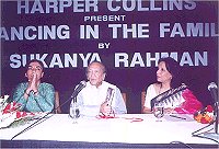 Sukanya Rahman's memoirs Dancing in The Family - An Unconventional Memoir of Three Women, published by HarperCollins/India.was launched by sitar maestro Pandit Ravi Shankar on February 22, 2002 at New Delhi. Many luminaries from the world of Indian dance, music and the arts were present. |
