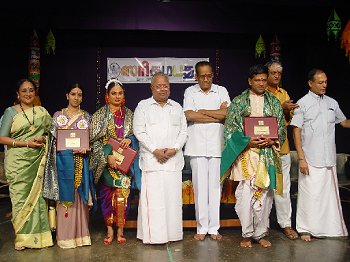 At the 18th Margazhi Mahotsav, Chennai based organization Bharat Kalachar conferred the KALA SEVA BHARATHI AWARD on Nandini Ramani (Bharatanatyam dancer and critic). 12 young artistes were honored with the YUVA KALA BHARATHI AWARD in recognition of their talent in dance and music - Anusha Narendra and Renjith Babu (Bharatanatyam), Sukanya Ravindhar (all rounder in Bharatanatyam, nattuvangam, choreography), B Muthukumar (flute), T Bhavani Prasad (veena), Madurai T N S Krishna (vocal), Charulatha Mani (vocal), U P Raju (mandolin), Delhi Sairam (mridangam), U N Giridhar Uduppa (ghatam), T J Sourirajan (thavil) and Absar (dramatics). |