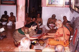 Hindu Temple Society of Southern California bestowed the title of ASTHANA VIDUSHI on Malathi Iyengar, artistic director of Rangoli Foundation, Los Angeles, in recognition of her artistic contributions to the community. |