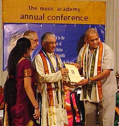 guru V P Dhananjayan was honored by the Madras Music Academy at their 78th