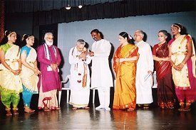 Sri Thyaga Brahma Gana Sabha conferred the title of VANI KALA SUDHAKARA on dancer Padma Subrahmanyam at Chennai. She was given a citation, a memento and a cash prize of Rs.5000. |