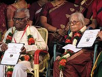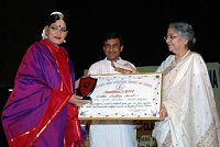 | The Dhananjayans and Peria Sarada were honored on 14th August 2006 at the International Dance Alliance (IDA) Chennai Chapter's 20th Anniversary Celebrations at Music Academy, Chennai. |