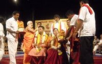 ![]() Bharatanatyam dancer couple from Mysore, Badari Divya Bhushan and Anjana Bhushan were honored with SUVARNA KARNATAKA RAJYOTSAVA PRASHASTHI by Suvarna Karnataka Rakshana Vedike at Ravindra Kalakshetra recently at Bangalore. Twelve eminent persons from society were selected for the award. |