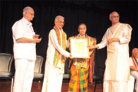 | At the 78th South Indian Music Conference and festival of the Indian Fine Arts Society held from Dec 18, 2010 at Chennai, dancer Vyjayantimala Bali was honored with NATYA KALASIKHAMANI on the concluding day of the festival January 4, 2011. |
