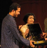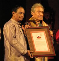 ![]() At the 26th Konark Dance and Music Festival conducted by Guru Gangadhar Pradhan Foundation at Arka Vihar in Konark, the first GURU GANGADHAR PRADHAN AWARD was conferred on Ustad Amjad Ali Khan (cash award of 1 lakh, citation and shawl) on the inaugural day of February 19, 2011 and the 12th SANJUKTA BIRLA AWARD (cash award of Rs.25000, citation and shawl) was conferred on Dr. Minati Mishra on the concluding day of February 23, 2011. |