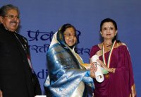 Lata Pada, Artistic Director of Sampradaya Dance Creations in Canada, has been awarded India's highest award for overseas Indians. The PRAVASI BHARATIYA SAMMAN was conferred on Lata Pada by Pratibha Devisingh Patil, the President of India, on January 9, 2011 in New Delhi, to commemorate lifetime accomplishments in the global Indian Diaspora. Lata is one of 15 individuals of Indian origin who were conferred this honour. |