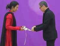 ![]() Lotus Music and Dance honored New York masters of traditional dance Pt Satyanarayana Charka (Kathak guru, East West School of Dance at Ananda Ashram) and Beibei Gu (Chinese traditional dance, director of School of the Arts, New York Chinese Cultural Centre) on October 23, 2011 at Brooklyn, NY. |