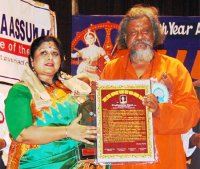 Guru Kanaka Sudhakar received the SWAMI VIVEKANANDA NATIONAL AWARD in the field of Art and Culture by the Ramakrishna-Vivekananda International Foundation on the occasion of 150th Birth Anniversary Celebration of Swami Vivekananda on January 13, 2011 at the Siri Fort Auditorium, New Delhi. |