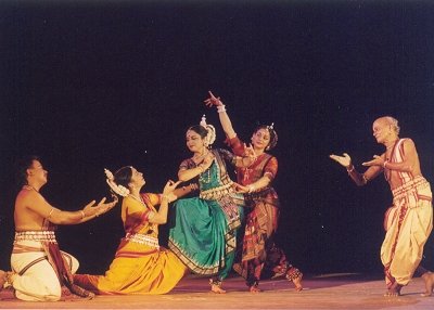 Ratikant teaching at Srjan LV: You are the torchbearer of your father's tradition. How heavily does it weigh on you? RKM: Interesting question though a difficult one. Guruji was a kind of man who liked to nurture everything and everyone around him, a giant shade-giving tree which protected as it nurtured. As a son, the artistic and emotional nourishment that I have received has helped me to take on the entire burden after his untimely passing. Also the way he looked at art, dance, people, issues, Life - has taught me to take each passing day seriously, to learn a lesson from mistakes made, and to look at dance and music as a very rich and indispensible aspect of our lives. We try to run Srjan as he would have done himself if he were here; we also try to look at new work and new choreography with the acuity of vision that he tried to develop in us. One is grateful for so many things! And being his son has been much more of a valued gift than anything else. If I can carry on his rich legacy of teaching and performing with the excellence that he demanded of us, I will be more than happy. There is indeed a small cloud to this silver lining! It has been very occasionally felt by a few that in new choreography, I might have veered away from a traditional Odissi style of the past compositions done by Guruji. People who make such remarks have not noticed that Guruji was a great innovator himself! There are countless examples where a few deft and subtle touches introduced by Guruji have enormously brightened traditional choreography. In fact, the courage to do something new has been inspired by him and his very fresh approach to fresh and unfamiliar ideas. So it does irk a little when people sit in judgment without seriously looking at the thought and the intensity that has gone into new work. If anybody has to be blamed for being innovative, it is Guruji. And he would have welcomed such criticism! LV: Do you think, at times, the popularity of the Kelucharan Mohapatra tradition eclipses the contribution of other gurus of the Jayantika movement? RKM: At a critical time in the revival of classical Odissi dance, Guruji's distinct way of looking at the finer aspects of dance, Guruji's detailed approach to research, Guruji's painstaking and rigorous teaching method and Guruji's own excellence of performance (both as dancer and percussionist), all created a lot of excitement among a batch of young dancers who carried Guruji's style to many parts of India and the world and themselves became star performers of classical Odissi. Sanjukta Panigrahi, Kumkum Mohanty, Sonal Mansingh to name just a few. When I think back on those days, I am convinced that it was a combination of various factors that made Guruji's work, as performer and teacher, so popular worldwide, with Guruji being the most central factor in all this. The Jayantika movement was a step in the right direction and came at the right time! Jayantika did indeed focus a lot of good energy into the revival of dance and music. If Guruji has received worldwide acclaim for his work and his disciples' work, it has been well deserved. Dancers, choreographers, host organizations - they did feel the intensity of the man.