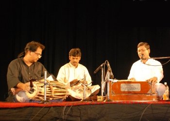 Ratikant accompanying an Odissi vocal recital LV: I am told, some think the present experimentation of some dancers with the Odissi form is resulting in dilution of the traditional Odissi. Your comments. RKM: Experimentation does not necessarily mean dilution. Any innovation within the framework of Odissi classicism can be considered legitimate if care has been taken by the choreographer to leave the basic Odissi structure undisturbed. At the end of the performance, we need to see if the Odissi flavor was there or missing! The Bengapatia, the beautiful Odissi costume, the typical sound of Mardala, the distinctive stances and bends of traditional Odissi - these are some of the indispensible constituents of an Odissi performance. I would not do without them. A deep understanding of the style and the grammar of traditional dance are good enough guideposts to prevent a choreographer from straying into uncharted waters. LV: Do you think it's of added value for an Odissi dancer to also learn to play the Mardala? RKM: Definitely yes. A dancer's skill is hugely enhanced if she/he has a solid sense of laya. Basic knowledge of Mardala helps in this. I believe that even if a person is not born with a sense of laya, it is certainly possible to develop it with some solid work on the intricacies of percussion. While dancers know tala, a perfect sense of laya is quite another thing. And the Odissi tala structure is interestingly complex. Yes, a good dancer needs to have done some work on classical percussion. Since I am both a Mardala player and dancer, my perspective of dance and dance creativity through the eyes of a percussionist has certainly become much sharper. Another big advantage is that a dancer can communicate far more effectively with the Mardalika by remembering bol sequences which have been attractive! Instead of referring to such bols in vague and inefficient ways! The need for good communication between the dancer and the Mardalika is paramount. Even more important is the possession of good sense of laya. It is amazing to discover that a number of so called 'good dancers', even those who are internationally popular, suffer from a debilitating weakness of laya capability. LV: Do you feel Odissi is flourishing well outside India? RKM: Yes, and it is a happy development for Odissi. With more and more Odissi troupes performing in a number of international platforms, the growing popularity of Odissi has earned not only respect for the dancers but has also brought a sense of accomplishment and joy. The cultural exchanges between India and other countries have created ripples of excitement as well as interest in traditional Indian dance and music. Odissi has had its own share of positive benefits from the international enthusiasm for this beautiful dance form. And enquiries keep coming almost every week.
