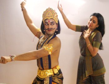 Kambaramayanam: a dance-drama in Bharatanatyam style Interview with Usha Raghavan - Dr. Elisa Ganser e-mail: elijanart@yahoo.it June 5, 2012 ![]() After the success of Maya's Dream, a dance-drama in Sanskrit on the birth of the Buddha, Usha Raghavan, Director of Kalasagara UK, comes back on the scene with a new production on the Ramayana. This Bharatanatyam version of the grand epic featuring 26 artists was presented on the 6th of April 2012 at the outskirts of Paris, Villebon-sur-Yvette, France. The festival 'Passeport pour l'Inde' organised by KaleidanScope has seen the Kambaramayanam - 12th century Tamil version of the original Sanskrit poem by Valmiki - come to life on the large stage of the Centre Culturel Jacques Brel, under the patronage of the Embassy of India. The London debut took place on the 29th of April, at the Bharatiya Vidya Bhavan centre. I had the pleasure to interview the dancer and choreographer Usha Raghavan about the artistic choices and ideas that have guided this production. Here are some excerpts from our dialogue. Usha, why did you choose to present Kamban's Ramayana instead of the more popular version of the epic by Valmiki? When I was invited to present a dance performance for the Festival 'Passeport pour l'Inde' in France, the organizer Milena Salvini was keen that I should present a dance-drama. Out of the several themes I proposed, she favoured Kambaramayanam, as Kamban's adaptation of the epic is not as well known in Europe as the one by Valmiki. ![]() Sita with Sakis ; Photo: J Kumar Kambaramayanam is a vast piece of literature. How did you select the episodes you wanted to include in your production? What were the criteria guiding the choice of the relevant verses? Well, before we started working on it, I was told that the length of the performance should be of 90 minutes. From among the approximately 12,000 verses spread among the 6 chapters of the epic, I initially chose only a few verses that would at the same time bring out the beauty of the Ramayana in its entirety and suit the dance sequences throughout. Then I began to jot down what exactly I wanted to present and how the dance drama should flow, keeping in mind the mood and momentum required. Initially, I was carried away by the superb lyrics of Kamban. Every chapter and every verse was captivating. I therefore started shortlisting the verses that would best render the scenes I imagined based on emotional variety. I like scenes with alternating solo, duet, and group dances, in order to create a dramatic effect. I then visualized the different characters and how I wanted them to act and react in every scene. Also, I was very keen to present aspects that I found remarkably different from the more popular version of the Ramayana. I hence dwelt particularly on those verses that would match with the episodes and scenes as I had envisioned them. When I create a new work, I am always very careful to ensure that my choreographies are true to the authentic literary composition. Given this, I consulted Mr. S. Swaminathan, Tamil scholar and teacher at the School of Oriental and African Studies, London. After considerable deliberation he approved of my choice of episodes and verses. I too was, by then, convinced with my choice of verses and went ahead deciding the scenes based on them. All in all, the entire gamut of human emotions has been masterly explored through visual and musical devices, where the recurrence of determinate elements and the play of mirrors - for instance the simultaneous narration of the same episodes by Sita to Hanuman and by Rama to Lakshmana towards the end - build up ever refreshing suggestions worthy of the best tradition of Indian aesthetic theory. It was very interesting for connoisseurs and dancers to see how you dealt with some of the episodes different from Valmiki's version. Can you elaborate on those? As a matter of fact, some were chosen for the sheer joy of highlighting the attractiveness of Kamban's interpretation. For example, the scene of 'Sita Swayamvaram' wherein according to Kamban, King Janaka himself requests Rama to lift and string the bow. King Janaka is here portrayed as a father anxious to find a suitable groom for his daughter. ![]() Rama, Sita, Lakshmana Bharata ; Photo: J Kumar ![]() Rama, Sita, Lakshmana & Guhan on boat ; Photo: J Kumar Moreover, the Ramayana as we know it from Valmiki has Lakshmana getting angry and mutilating Surpanaka due to her unwarranted advances, whereas according to Kamban, Lakshmana gets angry only after Surpanaka tries to abduct helpless Sita. In Valmiki's Ramayana, Lakshmana draws a protective line (the so-called 'Lakshman rekha') around the hermitage as he goes in search of Rama upon Sita's insistence. In Kamban's version, Lakshmana requests Jatayu to take care of Sita and leaves in search of Rama. There is no mention of 'Lakshman rekha.' The most interesting couple of stanzas I wanted to present are found in Sundarakandam; these portray the meeting of Hanuman and Sita in Ashokavanam. Originally, I intended to narrate the story of Kakasuran, which is a popular story that Sita narrates to Hanuman on that occasion. But I eventually came across two brilliant verses. Sita requires Hanuman to go and tell Rama thus: "The day he held my hand in marriage, he promised me that he would never even think of another woman in this life. Please mention this to him." "Once when I asked what name I shall give my pet parrot, my beloved Rama, who is the embodiment of dharma, suggested that I give the name of his impeccable mother Kaikeyi." ![]() Rama, Sita & Surpanaka ; Photo: J Kumar ![]() Sita & Ravana Adding to the richness of this performance, careful lighting and musical accompaniment serve as expressive means throughout the show. Two scenes in particular, enchained one after the other, were especially dramatic due to the effective rendering of their contrasting moods: Rama leaving Ayodhya at night, and the boat ride with Guhan the following 