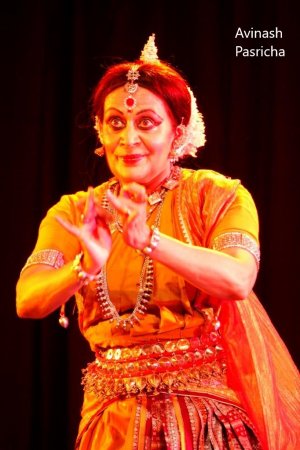 Do you have any favourite form or dancer? Interestingly, the most 'unphotogenic' dancer I've loved photographing is Kelucharan Mohapatra. He was not good looking, but his full body stances and expression were better than any female Odissi dancer's. Birju Maharaj, also, at times - no looks, no body, but that expression! Or Kalamandalam Krishnan Nair - without makeup he could do amazing expressions. Sonal Mansingh does a variety of things; she particularly enjoys the naina stories, and you try to capture those eyes. Vyjayanthimala - she's fully involved in her dance and does it very well, even at this age. I've clicked Madhavi Mudgal a lot, but she doesn't let go. She's very proper. Her niece is also photogenic and fully involved. I enjoyed photographing Leela Samson, when she used to dance solo. When they both danced together, Leela photographed better. Malavika Sarukkai was stiff earlier, but has come through with her experimentation. Alarmel Valli dances like a gazelle. As for form, I have no favourite as such, I shoot them all. ![]() Sonal Mansingh