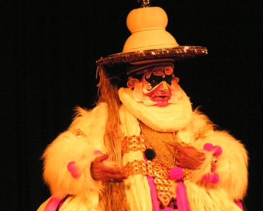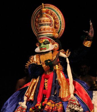 Why are the costumes so costly? Because there is carving. One carpenter takes minimum one month to carve one headgear, and then the silver and all is costly. And then another one month - minimum two to two and a half months for only headgear, and then the costumes and other things. So it is a very difficult undertaking. Then the ornaments, everything is carved wood, a special wood kumil. You can carve it in any shape. All the ornaments are made of this tree. What are the procedures of makeup and how long does it take? According to our tradition, it is only after a light dinner that you go into the green room and a lamp is lit. And then the list of dancers and characters is given out. It is only then that you know the part you have to play. Each performer's makeup takes about 3-4 hours. We apply the base ourselves and lie down, and a special makeup artist comes and does the mask-like makeup. It is not a mask that can be reused. It is proper makeup that has to be removed after each performance. The main ingredients of the makeup are minerals which are obtained from the rocks in mountains, which are also used in medicines. The yellow pigment, the red pigment, indigo - these are all pigments. This is made into powder and applied mixed with coconut oil, which soothes the skin from the burning caused by the pigment. Last year, there was a performance in Goa in winter. We had to use sunflower oil since coconut oil was not available. I had a reaction on my face, the black marks of which are still visible. It has an antiseptic effect. The pigments are added according to the desired colour, e.g., for green, we mix yellow and indigo, so the person has to be clear how much of each will determine the brightness of green. Red is also a pigment from the rock to which we add rice powder, otherwise it would be very dark. For the mask, we have 1 part chunam, quicklime, and 3 parts rice powder, which we grind with our hands. Then we mould it on drawing paper. Around 60 years back, it was done with only rice and no paper. You apply one layer, let it dry and apply the next. It was very beautiful but very delicate and the process is time-consuming. Now it is only the lining on the face, and then the paper is stuck on. It is not a mask but makeup. It will depend on the character to be depicted. For pacha characters, it will be plain, for kathi characters it is white with a red knife symbol, and the border will be with rice. For thaadi characters, it will be bigger and for Hanuman, it will be swollen too. It looks like a mask but it is not a mask. The original, in 1650 and thereabouts, was a mask. Then later, when it developed to Kathakali, in 50-60 years, 17th century onwards, it was makeup. Very few characters use masks, and not the main characters. ![]() It is so elaborate - face, hair, costume is so heavy. Do you think it is a hindrance to your movement as a dancer, or does it help portray the character better? For Kathakali, it is not like other dance forms. We have our arangetram immediately after learning one small item. Then the training and performance go together. For example, I had eight years training, all those eight years I was performing. So the heavy costume becomes part of it... Now, if I'm asked to perform a character on stage without costumes, I can't do it. For us, it is very convenient. Of course it is heavy, one must admit. And those who have the experience, we have no problem performing, and that is why my guru, even when he was 90, he was performing with full costume. There are other senior gurus performing with full costumes. For those who are not familiar, it is difficult at first. For emotions etc., it helps, actually, because rasa shringara, when we perform normally, one must be very careful. But in Kathakali, it is so romantic - sometimes, it cannot be performed. In Bombay, I performed Ravana; Mandodari playing my wife, cannot be ugly because of the makeup and costume and all these things. It helps. And in normal dance forms, mainly they have shringara and not samyoga. In Kathakali, most of the performances start with samyoga, hero and heroine embracing. It never looks ugly or vulgar. Families can watch together without any problem. It helps to produce a stylized shringaram. Samyoga and vipralamba both can be presented. It helps to highlight the way we present it, but everything must be in a controlled way. What about sweat? Because of the oil makeup, the face is not affected much, and those who are not used to it, they have difficulty at first with the oil. Clothes will become wet and heavy, but the audience will not see any difference. Could you elaborate on the misuse of makeup and costumes you mentioned? I have seen a Kathakali dancer taken to invite guests into a hotel. I was very hurt, seeing such a dignified art taken to a very low commercial level. Was it a temple art? You cannot say it was a temple art. There are temple and ritual arts forms in Kerala. Kathakali is not a ritual performance. It has small rituals because of our belief in Hinduism, like lighting the lamp and blowing the conch, giving obeisance to the teacher etc. But from the beginning, it was performed outside, after the harvest in the field, in the courtyard of the landlord's house. But even in the courtyard or the field, a simple stage is all that's needed. Koodiyattam, Theyyam etc. were performed only in the temple, but Kathakali had come out fully. My message is - never use traditional art forms for commercial ads etc. I had a very bad experience going from Kozhikode airport to my home. I saw a big hoarding, up till the waist it was my picture, and then a girl with jeans below. The title was 'tradition with modernity'. Then I found out it was for a chips company. I sent a lawyer's notice but there was no address. I once saw a picture of mine that a student had taken for her own purposes, but in a brochure by someone else, with no name or credit. The costumes and makeup are so elaborate, the labour... and 