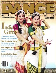 Ramaa and her daughter Swetha on the cover of Dance Magazine You and your daughter were featured on the cover of Dance Magazine. That must have been a great experience too. The Dance Magazine, as you know, is one of the most noted dance publications in the world with over 300,000 readers globally and critics and correspondents in at least 22 countries. My daughter Swetha and I were being interviewed for an in-depth article about how the second generation artists growing up in the United States were coping with their cross cultural identities and how they are carrying on the tradition. The editor asked us for several photographs to look at. So, I just sent a bunch, all taken by my husband and didn't think much of it. When the magazine came out, the writer Laura Bleiberg called and said, "Ramaa, I hope you are you sitting down, because you and Swetha just made the cover of Dance Magazine June 2000." I was in shock for quite a long time. There was also an article on Bolshoi Ballet in the issue and Kuchipudi beat Bolshoi ballet to the cover! Our photo on the cover actually brought international attention to us and to the dance form that we represent. It was one more opportunity to promote the art form I do, more rewarding than people just saying, "Ramaa made it to the cover."