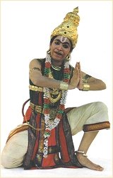 Ramaa as Hanuman in her collaboration with Asian Story Theater's production of Hanuman and the Monkey King What factors contribute to failure in achieving this goal? One is lack of on-stage professionalism. We cannot start performances late, or dance endlessly for 3 hours. Also standing on stage exchanging plaques and bouquets and thanking every relative, alive or dead - these things plague the Indian dance performances turning them into community gatherings rather than professional performances. What should belong at a private party or eulogy at a memorial service is all brought on stage and the audience are made to suffer through this torture. Also, don't let your husband and your brother-in-law come and operate lighting for you. Get a professional lighting designer. That's what they are for. The other thing is choreographic lethargy. We have to get out of it. We have to constantly reinvent our dances. By this, I don't mean new choreographies for every show, but readapting the repertoire to suit the venue and the audience. Many dancers create a piece for a proscenium stage and you see the Xerox copy of it everywhere. Such presentations flop miserably. You have to revitalize the dances and make it look like as if they are site-specific works specially created for that particular audience and that particular dancing space. In the summer of 2000, we were invited to perform at Grand Performances one of Los Angeles' most prominent performing venues. It is a gorgeous open-air stage, surrounded by pools of water. I looked at the venue and decided to present my choreographies on water-based themes. I completely restructured and re-choreographed my 'Ganga Tarangam' using the stairs, ramps and waterfalls at the venue as part of my presentation. My dancers even floated lamps on the pool of water to create a visual effect of being on the banks of the Ganga. We got a standing ovation from an audience of 2000. I have been invited back again this year. I am creating a special show called "Yatra -A Journey to India" which will be presented on August 18th, 2002. You are saying that by constantly readapting, reinventing or reinterpreting the traditional form of a certain style, to reach a larger audience is by no means backtracking or demolishing a traditional form, but to do it in a way without eroding the basic tenets of that style. Absolutely. Authenticity is important. Western audiences who come to see Indian dance want to see the real thing. They want the entire experience of costumes, music, movement and magic. So there is no need to underestimate the intelligence of the audience. There is so much material to draw from in our own tradition. They just need to be reinterpreted with a contemporary flair. For example, the story of Krishna lifting the Govardhana Mountain itself offers a significant environmental concept when Krishna says, "Why do you have to worship Indra? Worship the trees, the mountains, the cows". But we have to also remember that history has progressed from the times of the Ramayana and Mahabharata creating new stories, stories as powerful as the mythological ones, complete with the miracles of man's strength. We have to make room for their portrayal as well. We cannot throw the Sastras and Puranas in someone's face or keep saying, "You cannot do this because it is not in the Natya Sastra". At the Chicago conference, Hema Rajagopalan showed us how she used the katakamukha gesture to depict a giraffe, I showed them my gesture for an owl and Sonal Mansingh showed her gesture for a cockroach! It was fascinating. How can we narrate the story of India's freedom struggle or that of Mahatma Gandhi or Martin Luther King for example without inventing a gesture for a gun? Such reinvention within the framework is necessary.