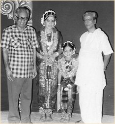 Ramaa and 6 year old Swetha with Sankarabaranam Venkatakrishnan during a 1987 performance What prompted you to institute the Venkatakrishnan Memorial Award? Sankarabaranam Venkatakrishnan was an extraordinary human being. Everything he did stemmed from a deep and genuine caring that he felt for the community of Indian dancers, not just at a regional or national level, but a global level. He was especially a champion of the young and delighted in discovering their talents. I watched him even play the role of an office assistant as he addressed over 800 invitations by hand and carried them in bundles to drop them off in the nearest post box. At a time when other organizers would throw their hands up in the air, shrug their shoulders and murmur that classical dance did not, would not, and could not attract a sizable audience in the city, maama not only got an audience for his dancers, he generated tremendous media interest for them as well. He had no immediate family, for he never married. We were his family - the dancers that he nourished and the dance community that he cherished. When Maama passed away four years ago there were a few obituaries here and there, but the community that had benefited from him didn't remember him in a very honorable way in which he deserved to be remembered. I felt compelled to do something in his memory. It was important not just to keep his name alive, but to keep alive the vision, the wisdom and all the benevolent principles for which he stood, for it is from the wisdom of the elders such as Maama that we learn our lessons for the future. My desire to create an award in his name was brought to fruition by Mr. Pattabhiraman who encouraged me and graciously agreed to administer this award through the SRUTI Foundation. The award will be given once in 2 years to a promoter of dance who specifically encourages classical dance, and young dancers. Mr.Yagnaraman gets the first award this year. It's special because he turns 81 and for several years, through his Natya Kala Conference, he has actually turned Madras into a tourist spot that attracts people not only from India, but from abroad as well. We hope to identify more such presenters for dance. There are presenters galore. But where is the audience? Is it not becoming increasingly difficult to take up dance as a career? That's because dance is looked at as a hobby or a means of cultural education, and not as a profession. Practicing dance as a mere hobby leads to mediocrity. If classical dance has to become a legitimate career, we have to approach it as such, with at least a 30% business sense. It is so important to constantly work at developing an audience or we will have no one to dance to. Creating dance for an audience that is not there is like selling iceberg in Alaska. Who is going to buy it? Part of that development process depends on how you present your art. Lewis Segal, the dance critic of the Los Angeles Times had a wise advice actually. He said, "I'm not interested in how you danced in your previous incarnations. When you come to this country, you are dancing here for this audience. You have to make every effort to make them appreciate it, to make them understand it. If you lose them, you have failed." Even Indians are prepared to pay $100 tickets to go watch an Indian film personality gyrating in his westernized outfit but won't pay $20 for a Bharatanatyam concert. Dance appreciation workshops can help, but it is even more important to make our performances interesting and entertaining. That's the key word here. Make it entertaining for them and they will come. After all, isn't that why people go to the theater, to be entertained? What is it about the Indian dance scene that disturbs you? I am disturbed and irritated by that categorization "NRI dancer." It offends me tremendously. As my friend Nala Najan once told me, "What is that term NRI all about, Name, Rank and Information? It's the most racist title. We are artists and that is the only identity we need." I couldn't agree with him more, and yet I keep hearing that annoying term over and over again in India, murmured in loud whispers over my head as if I am an untouchable with a dangerous communicable disease. A prominent dance scholar once told me, "For events like Khajuraho Festival, we do not choose NRI dancers." That's a stinky statement if I ever heard one! At a time when the world is getting smaller and closer through communication, travel and conferencing activities, why is it that you have to brand people by a name that does not exist within the realm of dance? Why do you separate us geographically and politically? There are only two categories that should describe a dancer - good dancer and bad dancer - and nothing beyond that. If anyone calls me an NRI dancer, I answer back, "I have only had training in Bharatanatyam and Kuchipudi. Unfortunately I never studied that NRI dancing". I met Leela Venkatraman for the 3 day Houston conference and had no idea that when she returned to India, she wrote a 2-page article in The Hindu about my activities in the US. Leelaji looked at me simply as an Indian dancer who's practicing her craft in a different geographical location. It really touches me when I see critics do this for us. It's the same with this Narthaki Online interview for instance!! It's thrilling for me, to be recognized simply as a dancer who is doing her job well. That term "NRI dancers" is the most politically incorrect term in the dance vocabulary. It has to go. We have to unite as a dance community and as a family. Do Indian dancers in the US watch only Indian dance or other dance forms too? Personally I always attend all kinds of performances to watch dancers from Brazil, Africa, modern dancers, ballet dancers...I have not seen many Indian faces in all these audiences. It really irks me. Especially if you are a dancer, you have to familiarize yourself with what your colleagues are doing. What is the point in living in a culture