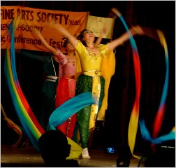 ![]() The next part of the dance drama shows King Suddhodana (Rajeshwari P Nair) arriving with great fanfare. When Queen Maya brings the child, the King summons astrologers. One astrologer predicts that the child will be a great emperor with many wives and he will vanquish many kingdoms, while the other predicts that he will be a spiritual emperor to the people. All the props used in the scene were hand made and designed by the Kanakasabha team. The Queen's sister Maya Prajavati has a vision of the future of the Buddha and the spread of Buddhism in the world. To music set on the keyboard by Kishan, this was presented almost entirely by the 3 Chinese dancers by way of their traditional ribbon dance, fan dance and a sequence where Low Kok Wai moved around the stage with a dragon head mounted on a pole. Seen purely as Chinese dance, it was entertaining, but did not quite fit in with the earlier part of the program. The whole cast assembled for the finale with chants of Buddham Saranam Gacchami.
