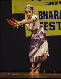 Inborn interest in dance: Maheetha Bharadwaj - Lalitha Venkat, Chennai e-mail: lalvenkat@yahoo.com January 14, 2006 ![]() Maheetha Bharadwaj has done her Bharatanatyam arangetram in September 2004 in the US. Her gurus are Adyar K Lakshman in Chennai and Sudha Srinivasan in US. She has given many performances in US and some in India too, including raising funds of $1200 for Udavum Karangal. Influenced by her maternal grandmother, Maheetha is a keen Carnatic music singer and actively participates in Thyagaraja Utsavam festivals. She is a good swimmer and learns the piano as well. And she is all of 10 years old! In Chennai with her family for the famous December season, Maheetha gave a performance on January 8, 2006 for Thyaga Brahma Gana Sabha. Guru Adyar Lakshman conducted the recital and gave vocal support along with K Rama Rao. L Baba Prasad on mridangam, A V Unnikrishnan on flute and her grandmother Meenakshi Gopalan on veena provided accompaniment for her nearly 2 hour recital. She presented a mallari, a jathiswaram, varnam 'Manavi chekonaraadhaa,' a short padham in praise of Devi 'Devi neeye thunai,' another short padam 'Nee uraipai' where Rama sends Hanuman as envoy to Seetha, an item in praise of Lord Krishna and a thillana in Brindavana Saaranga. "Do you ever have stage fright?" I asked her before her performance. "NO!" said Maheetha, brimming with confidence, as she tied her ankle bells. "I have given many performances before." This assured young lady is very clear in her mind about her chosen vocation - or rather, one of them as she is multi-talented! ![]() From when did you start learning Bharatanatyam? From four. Did you start learning dance because your parents wanted you to, or because you wanted to? I had an inborn interest in dance. I wanted to learn dance. My mom also introduced me to dance and I developed my own interest because I like the movements. I just like how dance is. I love ballet. I started to learn ballet when I was 3, but transportation was difficult, so I had to discontinue after barely a year. I was so disappointed. How often do you attend classes? Guru Adyar K Lakshman came to conduct a workshop at St. Louis. He started to teach me too. Then he had to go away to India, so he introduced me to his senior disciple Sudha Srinivasan. Depending on what I am learning, I attend 2 or 3 classes a week. Sometimes for 30 minutes, sometimes for 3 hours depending on the adavus or items. How did you feel about performing in Chennai? I have done it before, so it was not like a new thing for me. But there's a different way of dancing here, like the climate, how much I sweat, how much stamina I have to use. The floor is also different. Do you understand what you perform or do you just do what your teachers say? To give expressions, I must understand what my teacher says. So, yes, I do understand what my teacher explains to me. How do you manage your studies and your dance? I am now in my sixth grade and have lots to study. But dance for me is fun, gives me relaxation and also new concentration. I love dance! Do you intend to seriously continue to learn dance? Yes! My dream is to become a performing artiste and teacher as well... Maheetha can be contacted at: mythub@hotmail.com |