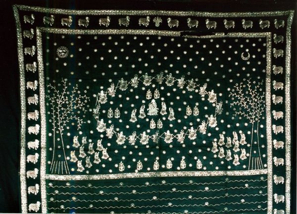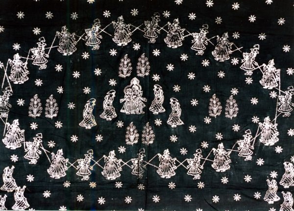 While the rasa lila takes place within the limitations of time and space yet there are suggestions that the rasa dance takes place in time that is beyond time, it is a sacred time, and the full moon of sharada becomes the night of Brahma, where there is fullness and no fragmentation, just being not becoming, where man and god are not divided or distant but in one blissful embrace and the sacredness of this remains as long as the gopis are interlocked with each other, their hands clasped, protecting the space within from the profanity of the world. In the Sursagar of Surdas, we find this description of the night of Brahma: