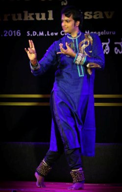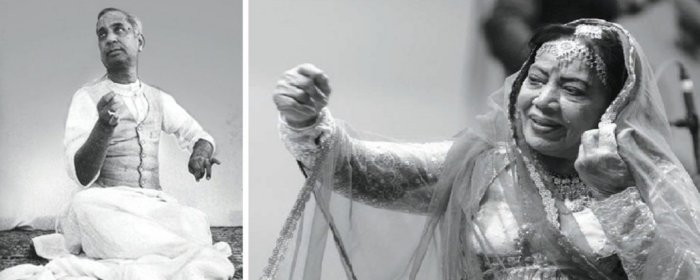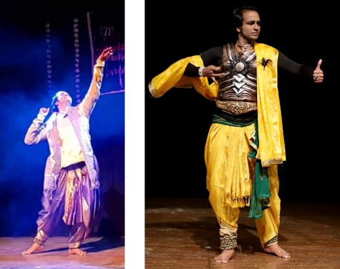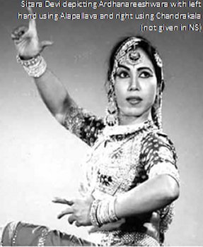 The Katha of Mudras Asamyukta Hastamudras from the Natyashastra as seen in Kathak Parampara - Sunil Sunkara e-mail: sunilrsunkara@gmail.com February 10, 2020 ![]() While in the Natyashastra Chapter IX on Upangabhinaya, Bharata refers to the gestural language as hastas, the word mudra is seen in the Bharatarnava, a later work by Nandikeshvara. It is also seen as a part of tantra culture, whose communities were closely following the commentaries of the Natyashastra. Thus, we come across the joint word hasta-mudra that later came to be referred to colloquially as 'mudra'. While looking at the history of Kathak, one can see its focus was towards drawing emotions from the daily life of people and creating connections with narratives from itihasa, which is what we perceive as a 'lokadharmi' approach. The kathavachaks or travelling bards were a medium of mass communication. The stories they weaved drew on lessons from itihasa like Mahabharata or Ramayana. Abhinavagupta and Bhatta Nayaka, 10th CE, speak of Saadharanikarana - art enabling the viewer to live the emotions, thus a tool for thought inception. The Communicator (the Kathak dancer) and The Subject (the audience) are bound through The Objective (the creation of the rasa). The use of mudras requires the subject audience to understand the meaning or signature behind usage of the mudras. This knowledge was to be found mostly among the elite post the 18th CE, making it a necessity for the kathiks to start using as 'close to life' depictions as possible. In the 20th CE, the reformation and revival in Kathak, especially with the advent of government supported institutions led to recreation of both the knowledgeable sahhridayi audience as well as an expansion in the 'vastukram' or repertoire of Kathak to bring to the fore once again a dance laced with the implied beauty of meanings through Kathak adorned by various mudras. This article looks at the various Asamyukta hastas mentioned in the Natyashastra, attempting also to connect with their current popular usage in Kathak. A valuable reference has been the in-depth analysis on mudras done by Dr. Vibha Dadheech, Bharatiya Nritya Ki Varnamala Hasta-Mudrayen. There are twenty-four gestures of single hands. Taking reference of Dr. M.M. Ghosh's translation of the Natyashastra (NS), the uses (viniyoga) of the gestures that have been given by Bharata and found in Kathak parampara have been given below along with other non-mentioned uses of the mudra wherever popular usage exists within the Kathak paradigm. 1. Pataka (Flag) - The fingers extended and close against one another, the thumb bent. ![]() Pataka has a number of uses cited in the NS that are also used in Kathak. 1. To slap 2. To show scorching heat 3. To show attainment of happiness 4. To arrogantly refer to one's own self 5. To show torrential rain 6. To show a shower of flowers, two Pataka hands with the fingers separated and moving are to be joined together 7. To show a shallow pool of water 8. To make a present of flowers 9. The same Pataka hands with their fingers pointing downwards to be used to represent anything closed, made open, protected, covered, dense or private (to be concealed) 10. The Pataka hand with its fingers pointing downwards and moving up and down is to express the speedy movement of wind and ocean waves breaking against the shore 11. The rechaka of this hand to be used to represent encouragement, many (in number), a great crowd of men, height, beating of drums, flight of birds upwards 12. To show anything washed, pressed, cleansed, pounded should be represented by palms of hands running each other 13. To show holding up a hill or uprooting it 14. Of representing man and woman ![]() L: Neelam Awasthi as Shiva and Vibha Dadheech as Parvati C: Sunil Sunkara depicting dhwaja R: Padma Sharma showing ashirwaad The Pataka is one of the most often used mudras in Kathak and all the nritta hastas use them. A special focus in Kathak is on the delicacy as well as sharp, circular movement of the wrist. For this, it is necessary to often time relax the Pataka hand to a natural stance. On the sam-Pt Birju Maharaj 2. Tripataka (Flag with three fingers) - the third finger of the Pataka hand to be bent ![]() The following three uses given by Bharata are seen commonly in Kathak. 1. Drawing of tilak 2. Showing of lamp (jyoti) 3. Putting on a crown 3. Kartarimukha (Scissors blade) ![]() Bharata gives a use as to decorate or dye the feet, which is depicted sometimes in Kathak. Apart from the NS viniyogas, Kartarimukha is also used in Kathak to show creepers. Above, Paullumi Mukherjee depicting Kartarimukha (to show brilliance) in right and Alapallava in left (to show a luminous jewel). 4. Ardhachandra (crescent moon) - the fingers and thumb so bent as to make a curve like a bow. The following two uses given by Bharata are used in Kathak. 1. To show crescent moon 2. To show ornament ![]() Left: Dr. Nandkishore Kapote uses the Ardhachandra to depict a mirror. Right: Pt Birju Maharaj using Ardhachandra and Mushti to depict the blocking of a path 5. Arala (bent) - The forefinger curved like a bow. Not used in Kathak traditionally. 6. Shukatunda (parrot beak) - the ring finger (third finger) of the Arala hand is bent. Not used in Kathak traditionally. 7. Mushti (fist) - fingers have their ends bent into the palm and the thumb is set upon them. The following three uses given by Bharata are used in Kathak. 1. To represent beating 2. While milking of cows 3. Grasping weapons ![]() Left: Using Mushti to depict Gada and Pataka to depict the Sanjeevani mountain Right: Depicting bow using Shikhara in left hand and arrow using Katakamukh in right 8. Shikhara (peak) - in the mushti hand, the thumb is raised. From the NS the following two uses are seen in Kathak tradition today. 1. Depict a bow 2. Painting/delineation of lips Apart from this in Kathak, Shikhara is used to show a flask filled with water or wine, to depict power, to depict a conch and also a