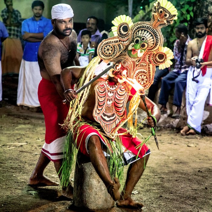 Postmodern meets Pre-Dravidian - Marc-Paul Lambert e-mail: sundara2004@yahoo.com Photos: Marc-Paul Lambert March 3, 2022 Borrowing movement from others What is new? What is contemporary? ![]() Kalan Kolam from Kadalimangalam, 2018 "The dancer today will seek to understand, refine, dig and especially make of his body a lucid and singular project." (Laurence Louppe 2003 [1] ) Borrowing movement from others It is remarkable to see how, some fifty years after Paris, the term "contemporary dance" settled in hotspots like Mumbai or Chennai [2] , breaking with semantics of Indian classical legacy. A catchy mood at first, it seems dancing contemporary could propel new choreographies everywhere on the planet, in original formats, although something déjà vu reminds us too of the legendary times of French Bagnolet "contests" (Chopinot, Découflé) - be it their bold manners; dancers shaking codes with irony, and their attraction to use space as on a playground (Galotta). Observing today how the dance scene evolved from a large perspective, the change "dancing contemporary" has brought to the embodiment of global models reveals to be far from being frivolous. Like a god creator, the artist decides either to pick up the movement material from the abstract, inventing coordinated phrases coming out of nowhere. He (or she) might ask the team to develop on found movements during improvisations. Creating a new feeling by moving adequately is not easy, but it should happen. It supposes you are altering although not intentionally, the audience's overall perception of the event, busy with collecting muscular and senses analogies. Spectators are figuring out on stage the plausible meanings conveyed by gestures between all parts. Work in progress may need to be cleared out from unnecessary affects. For that, the artist has built an emotional harmony to the piece by explaining his point with gestures, or a significant intonation, or by using a keynote one may rely on. Still the choice of actions, the speed, the "punctuation", the way hands are used may turn out to look absurd, since it doesn't make sense a priori, to alter the production and the nature of body signs at the place of anthropology foundations; or else it remains the most difficult option in dance ("Trio A", Yvonne Rainer, 1966), to read in the absence of a pure musical writing. There is a second possibility; dancing contemporary could entail you to work with an elaborated hand and footwork battery inspired from traditional rhythms, the source of regional dances. You can mix different techniques together, with the aim of altering body codes; introduce, for instance, yoga asanas and gymnastics into the Bharata Natyam language. The impact of gestures on sensibility will change into a new perception, although the sedimentation of other hieratic, minute details that were sculpted in body attitudes during generations could vanish for something else. Now if you really want to convey a new message from within, another vision of the dancing text does not involve a formal change of the genre. One may decide not to alter, ever, the Natya Sastra canon and even so, one would bring a different approach to interpretation. Suiting the genre to trends is a recurrent matter every generation learns to solve its own way. Without changing the rhythm, you can modify with a specific attitude the status of protagonists in representation. Actor Kottakal Sivaranam, an outstanding specialist of Kathakali feminine characters, amidst a strict hierarchical order imposed by the theatre genre, declared once he considered himself as an activist of women's cause. It was all in the expert manners he used. He was playing with the codes yet he needed not to change the technique fundamentally to let his point of view get across. Body statements are evolving with different fortunes depending on cultural acceptations-body through motion will always tell its truth. What "it says" would follow "its mind" against the norm of influence, while the intensity of action is modelling invisible lines of containment to body expression by applying as many grids the body integrated. However, situations may lead artists a lot further with their acts. In dance the change doesn't have to be big to be felt; the slightest alteration of meaning brought in resonance to a special gesture produces a split in social depictions, and a possible modification in personal feelings. There is in French literature what we call "la modernité" (modernness, or modernity). More a notion than a concept, this exhilarating sensation suggests a significant change emerges in the domain of art forms, transforming hackneyed social horizons in new perceptions. Conceptually, modernness is a cultural injunction (Baudrillard), as well as a deliberate act opposed to the course of tradition, so much the kind of rupture new body behaviours initiate predicts a crisis to the original model and the appearance of a new trend. Now thinking dance in terms of cultural politics, a so-called "need for modernness" extrapolated from its European context, could be a risky proposition if one tries to transfer a Western term - modern -, rich with affects, to cultures where dance is already emblematic of mixed traditions and modifications, knowing that dance characteristics can be intertwined with theatre techniques, like in India, and be taught in traditional structures such as Margi school in Trivandrum for a long time. Breaking with monotony, newness comes incarnated in a mixture of transitory and eternal absolute the first signs we date back to the end of the 19th Century (Baudelaire, 1863), when "being modern" implied a myth; supposing a mode of civilisation enhanced with long time debates over the need of freedom, and the emergence of the individual. In the meantime, connecting body motion and social values are drawing irreversible courses together. Basically, you can't reverse a communal life process. One can suppress freedom in human hist