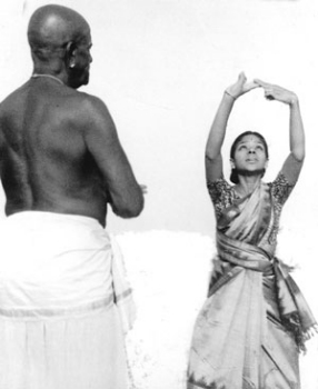 Seven decades of Bharatanatyam: Guru M K Saroja - Ashish Mohan Khokar, Bangalore e-mail: khokar@vsnl.net Photos: Courtesy Mohan Khokar Dance Collection April 23, 2006 Born Madras Kadirvellu Saroja on 7th April 1931, in Madras, Saroja had no dance in her family, until Vidwan Kattumannarkoil Muthukumaran Pillai of Chidambaram, came and stayed in her Georgetown residence to teach the two sisters, Kumari Selvamani (India's first woman nattuvunar) and Kumari Saroja, dance. Mentored by none less than legendary Ram Gopal (1917-2004), Saroja was an accomplished representative of her guru's form by the time she was ten, so much so that Rukmini Devi Arundale was shown her dance and she appointed the guru as the first teacher of Bharatanatyam at her fledgling institution, Kalakshetra. E.Krishna Iyer and Prof. Sambhamoorthy helped promote her career and no less than Dandayudhapani Pillai sang for her. She can be called a pioneer in the resurgence of Bharatanatyam in the forties.