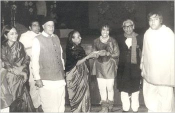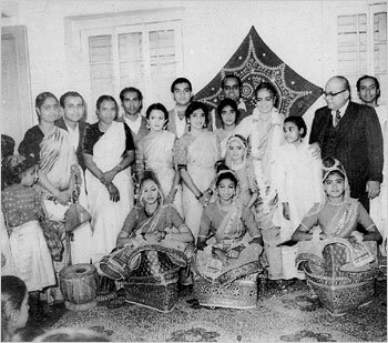 Pandit Chitresh Das: Master artiste, guru and humanitarian - Charlotte Moraga, California e-mail: ckathak@yahoo.com January 5, 2009 "This is a good time as any to step back a little and pay tribute to one of the most committed ambassadors of Indian culture in the West. While political analysts and theorists like to talk about the profound "soft influence" of culture, Das has shown its enormous power by example." Why does India West journalist, Mr. Ashfaque Swapan, say this of Pandit Das in a recent review of Das' critically acclaimed full length Kathak solo, Master of Tradition, a performance that is named among the top 10 dance events of 2008 to see along with such mainstream greats as the Kirov Ballet, San Francisco Ballet, Mark Morris Dance Group, Merce Cunningham Dance Company and the San Francisco Hip Hop Festival? ![]() Pt Das' father, Prahlad Das, performing contemporary dance ![]() Pt Das at age 9 with Pt Ramnath Misra (sarangi) and Ram Shankar Sahai (tabla) From an early age, Pt Chitresh Das, was set to be the ambassador of Kathak, but not just for Americans. His contributions to Kathak have universal reach. Das may be viewed as the Johnny Appleseed of Kathak dance, spreading the seeds of Kathak from the east coast of the United States of America beginning in 1970 to the west, but the journey actually began in 1954 in Calcutta, the city that gave birth to other missionaries of culture and art like Swami Vivekananda and Uday Shankar. ![]() Pt Das at age 9 performing with the great tabla master Pt Samta Prasad. Seated in front is his guru Pt Ram Narayan Misra ![]() The great Shambhu Maharaj at the Das' home (c 1958) Growing up in his parents' dance school in Calcutta, Nritya Bharati, Pt Das was surrounded by great literary artists, poets, dancers, and gurus of the times. He has fond memories of iconic dancers such as Rukmini Devi, Uday Shankar, Balasaraswati and the legendary Shambu Maharaj coming to visit his home. There were also famed musicians such as Gulam Ali Khan and Amad Jan Thirakwa and many more.