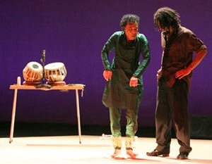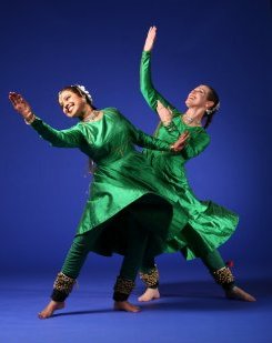Nritya Bharati dance room: third from left is Chitresh's mother Nilima Das, Pt Das (age 9), to his right is the great Rukmini Devi Arundale After such a childhood, coming to America with eight dollars in his pocket was an adventure rife with new experiences. In 1970, Pt Das came to America on a Whitney Fellowship to study modern dance and teach Kathak at the University of Maryland. While teaching in Washington DC, he remembers his roommate who had an alligator in his basement giving him a ride to the university on the back of a chopper. In his first years in America, Das was exposed to the vibrant dance scene in NYC. On weekends he used to go to NYC to stay with supporters, Alwin Nikolai and Murray Louis. There he met many American dance luminaries. But Das, then as now, never felt the urge to fuse western dance with Kathak. He was to experiment within tradition in the coming years, but always sticking to his motto, "Freedom comes from refined discipline with responsibility." Being exposed to the greatest ballet dancers, tap dancers, modern dancers, athletes and artists only inspired him to go deeper into his own tradition where he continued to find depth and relevance in Kathak. ![]() Pt Das as Ravana in the first dance drama he created in America. (Herbst Theater, c. 1975) One year later, in 1971, Ustad Ali Akbar Khan invited him to establish a dance program at the Ali Akbar College of Music in San Rafael, California. While at the AACM he was again steeped in a rich artistic environment... "I was in the right place at the right time. Everyone used to come, Ravi Shankar, Lakshmi Shankar, Nikhil Banerjee, Ustad Alla Rakha Khansabh, and Shankar Ghosh was the music director. What an exciting time. But it wasn't easy. Zakir, Aashishda and I were just starting out. The hippie culture was in direct clash with my upbringing." ![]() Following Pt Das' historic performance before Uday Shankar Front from left: Nanku Maharaj (Benares Gharana tabla master), Ramnath Misra (sarangi - Pt Ramesh Misra's father), Amala Shankar (wife of Uday Shankar), Prahlad Das (Pt Das' father), Uday Shankar, Pt Das, Nazim Ali Khan (1970) Das continued to go back to India for winter performances and in 1976 he took his American students on a tour to India where they performed on Indian national television. Shortly after his return to America, he founded his own dance company in 1979, the Chhandam Chitresh Das Dance Company (CCDDC), incorporated as a non-profit organization in 1980. Twenty-four years later, CCDDC boasts of being one of the world's foremost Indian classical dance companies and the largest Indian classical dance school in North America. He has also expanded to have one of the world's only pre-professional youth Kathak company, the Chhandam Youth Dance Company, outside of India. But, he is quick to remind that it took almost 40 years of hard work. ![]() Pt Chitresh Das being presented with an award by the mother of Ustad Vilayat Khan. To her right is the great harmonium player Mantu Banerjee, to Chitresh's left are Daggarsahib and Sabir Khan (1982) In the 1980's Das created many innovative choreographic programs. One of his ground breaking features was Gold Rush. Das collaborated with composer George Ruckert, currently professor at MIT, incorporating western violin, banjo and synthesizers. He even incorporated the high kicks of the French Can-Can dance and a Mexican Mariachi waltz. Das saw the Gold Rush as a metaphor for the joys and pitfalls of following a dream. He created other innovative choreographies ahead of his time such as Energy, Class Tech, and Rhythmics. Dancers wore black body suits, short silver kurtas, and he even wore a tank top in on of his choreographies. Some of the music he composed used synthesizers and an electric flute. ![]() First tour of India by Pt Chitresh Das' American Company The 1980's were a time of experimentation and lots of touring the globe, performing at the Lincoln Center, the Olympic Arts Festival, Los Angeles Summer Olympic Games in 1980 and opening Pt Ravi Shankar's Rimpa Festival in Benares, India with Zakir Hussain in 1983. ![]() Chitresh Das Dance Company members Jaiwanti Pamnani and Charlotte Moraga In 1987, Das was invited to establish the first accredited Kathak course in the US at San Francisco State University (SFSU) and began teaching and touring annually in Germany, Poland, Hungary with Tanzprojekt as well as expanding his school in the US. For the first time, his students, no longer the blondes and brunettes of the hippie era, were predominantly of the Indian diaspora, though his company, many of whom began studying with him at SFSU, were ethnically diverse with different backgrounds in dance. The 1990's brought a new era of introspection and going still deeper into the roots of classical Indian art, teaching at SFSU, spending time in nature surrounded by the giant redwoods, and running in the hills of San Rafael, he carved out his own Himalaya. Through intense riyaz he began to develop a new technique called Kathak Yoga. Yoga comes from the Sanskrit work yug, meaning union. Kathak yoga is a meditation in motion, focusing on the union of breath, voice, dance, footwork and subtle expression, and sometimes playing an instrument simultaneously. He trained dancers such as myself and Jaiwanti Pamnani, reinvigorating the guru shishya parampara. We presented our first full length traditional solos in 2001 and 2002 respectively and recently a new generation of company members has taken the stage in their evening length solos. What makes these performances unique is upaj. Upaj, improvisation, is at the heart of these solos, and appears to be getting more rare. Is the reliance on recorded music and slick choreographies impacting this dynamic tradition in Kathak? Das is demanding that serious students preserve the heart of Kathak, improvisation, by developing a serious riyaz with mehenat and performing with live music. In performance, a dancer's individual struggle an