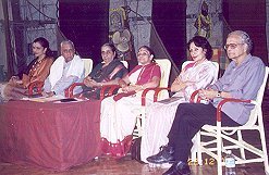 Photo courtesy: The Mohan Khokar Collection The E Krishna Iyer Medal instituted by Sruti magazine for preservation and propagation of Bharata Natyam was awarded to the veteran Bharata Natyam exponent and guru Smt. M K Saroja on 22 December 2000 (10.30 am) at the Krishna Gana Sabha. Born 1931 in Madras (Madras Kadarivelu Saroja), she was spotted by vidwan Muthukumaran Pillai of Katttumanar Koil, Chidambaram, when he came to Madras in 1935 looking for students from "good families". The guru's eyes fell on the two grand-daughters M K Selvamani and M K Saroja - of Mahalakshmiammal, a patroness of the arts who forthwith engaged the guru to teach them. The guru was new to Madras, had no place to stay, so he moved in with the family in their Georgetown home. E Krishna Iyer spotted the sisters in 1936 and in 1937 he was instrumental in arranging the arangetram of the elder sister M K Selvamani (who later became a nattuvanar - the first woman to be so and during the bomb-scare days of 1941 taught Baby Kamala Laxman who moved in as their neighbor in Madanapalli).