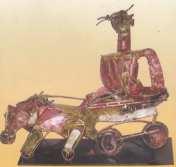 Alone and on the move - Padma Jayaraj, Thrissur e-mail: padmajayaraj@gmail.com April 14, 2012 It was a hot summer day in Palghat, Kerala. Heat waves radiated from the Western Ghats. But secure in a glade, forgetful of the world around, a bunch of sculptors were immersed in their work. Eight sculptors, cutting across India were contributing their work to the first Sculpture Park in the country. The lone woman among them was overseeing a crane putting her art work in proper position on the ground. A granite pillar with carvings on 4 sides reminds you of a pillar in an ancient temple in south India If Anila Jacob is occupied, Mr. Jacob is ready to entertain. He pulls out testimonials, photographs of her works, brochures. He talks about the years past that brought her fame and recognition. He recalls how KCS Panikar, the Principal of the College of Art, Madras, interviewed him prior to marriage making him promise that Anila would continue her artistic career. And he has kept the promise. Anila was a born into a family that loved art, in Kottayam, Kerala. Her grandfather had artistic inclinations. That the family had sent her to learn art in those days speaks of how she was released from hold. And she was the first woman to win many awards in a male dominant field. Inspired by gifted women students who made their marks later in the art scene, Anila remained under the spell of her guide, and guardian, KCS. The stamp of the school 'is still visible in the work of this sculptor who is part of Cholamandal.' Anila Jacob stands out in her chosen field of sculpture winning awards and acclaim both in India and abroad from 1962 onwards. The aesthetics of linear rhythm from India's art heritage flows through her works. Her style emphasizes lines as the main element of art expression. Decorative linearity is a telling ingredient of her carvings. The multitude of decorative squares, triangles, circles, ovals etc., creates an aura of spontaneity that traces her lineage to 'Nativism' as an ideology advocated by the Madras Art Movement initiated by KCS. Anila's sculptures are a mélange of ideas and elements wrought together by a sensibility, unique in expression and interpretation. As a woman she incorporates the concept of physical labor as in Fruit Seller, Fisher Woman and Farmhands empathizing with them in a metonymic extension of her own labor as a carver. For Anila, the figurative is an instinct. Her oeuvre today constitutes a figurative genre in mixed media of metal and wood. She works with copper, brass and bronze with teak or rosewood. Her work has two components: wooden base and upper metal image, both well-knit into a seamless unity. She fuses metal and wood with remarkable fluidity. The artist depicts rural Kerala, in its cadences: human figures riding on animals, travelling in carts or boats. Aquatic creatures like the fish and crocodile make their presence felt. Themes and technique coalesce to make suggestive, floating movement. Her works like The Chase, Cart Ride, the Royal Procession, Journey etc., convey forward motion, in a highly individualistic style. The figure is soaring in motion in Cart Ride; the animal, in The Chase; the wheels propel in the stately Royal Procession. All her works seem to be on life's journey: in motion, or poised for motion. ![]() Cart Ride ![]() The Royal Procession Anila Jacob takes a break. Our conversation veers to why women are less in the field of visual arts while their presence is remarkable in performing arts. It seems to be true, that one can start quite early in life, be it music or dance while identifying a chosen field, a discovery that comes rather late in visual arts. "You need patience, infinite patience before recognition reaches, if at all it reaches. When we began even money was hard to come by," Anila recalled. But Luck has blessed Anila Jacob from birth. She came from such a family that her economic source was perennial; luck blessed her in marriage too. And luck has accompanied her all along giving her recognition and fame. She smiled looking at her husband wistfully. But then her two children chose medicine and went abroad in search of new pastures.... even when they had artistic inclinations. "Maybe social pressure...." She wondered. "But one of my grandchildren is an exceptionally talented one." Perhaps the third generation may follow the genetic map. ![]() Journey We stand before an over-sized granite pillar, carved meticulously for details. This is her second work in granite. The first still stands in Connaught Place, Delhi. Indicative in details, it is a fusion of many things as the title Fusion suggests. The old and the new techniques are fused: figurative in suggestive details, closer to cubism in rendering. Her visual language is quasi abstract. ![]() Anila Jacob ![]() The pillar We walk around the piece, pause, wait patiently; yes, the picture emerges: a woman under a spreading tree. Woman from time immemorial has the function of a tree, a fruit-bearing tree. The other side is Beauty and Bird. A flying bird, with its open beak...does it sing and soar, like her spirit? Stories are what Anila's sculptures tell. The third side depicts a fish seller. Yes, the woman is proficient in the give and take of social life. The last is the crowning picture of the woman's glory - the Horse Rider. Here, the horse turns its head and is at a level with the woman's face, as if acknowledging her mastery. "I had Jhansi Rani in mind, the iconic woman in Indian history....each part has a story to tell and that is what I attempt to do," said the artist. An inspiring piece from a woman sculptor! For me the narrative makes it a single piece, although each has its own identity. If the two sides reveal the nature of the woman, the other two points to her capabilities, and her function in social life. From another angle, it is the story of the woman in India down the millennia. Like Mother Nature she has been the mother from the beginnings. Ages have rolled by