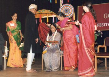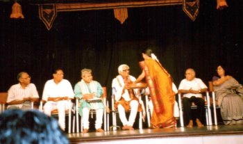 Past Forward with Guruji and Amma - Mamata Niyogi Nakra e-mail: nakrabm@hotmail.com Photos courtesy: Kala Bharati September 3, 2013 There are moments in one's life when destiny smiles in the face of adversity. One such moment came in my life when I had an accident in1969, which left me with a permanent injury and brutally cut me off from performing Bharata Natya. Some of my well-wishers helped me to overcome the initial shock and despair by encouraging, to the point of coaxing and goading me, to teaching Bharata Natya in Montreal. "What a formidable task to undertake," I thought at the time; but, as if by divine intervention, my gurus U.S. Krishna Rao and U.K. Chandrabhaga Devi (Guruji and Amma to me) appeared on the horizon just when I needed them most, to provide guidance and inspiration and above all, to help regenerate my passion for dance. ![]() At Maha Maya with their awards ![]() At the reception after the lec-dem (1980) The Rao couple was on a visit to North America in the spring of 1980 and accepted an invitation from me to come to Montreal. They gave a scintillating lecture demonstration on Bharata Natya, organized by the India Canada Association of Montreal, to a packed auditorium of over 500 captivated listeners. On that occasion, not only did they enlighten the Montrealers present on the intricacies and aesthetics of Bharata Natya, but also endorsed, with warmth and generosity of spirit, my humble efforts to start a dance school by agreeing to return to Montreal for an extended stay. It was a wonderful way to re-establish our contact and renew our ties which dated back to the late fifties when I had gone to Bangalore for advanced training in Bharata Natya after having earlier studied the art in Patna from one of their disciples, Guru Balakrishnan. Their return to Montreal took place in September/October 1982 to coincide with a three-day symposium on Indian classical dance sponsored by Kala Bharati in collaboration with the dance department of the University of Quebec at Montreal. Guruji delivered the keynote speech at the inauguration of the symposium. They both conducted workshops and presented papers at the various sessions along with many other dancers who had come to attend the conference from all over North America. Their participation at the conference made an important impact on the local dance milieu. This was a widely acclaimed and well attended event of which Dance Magazine, a leading American Dance journal, noted: "Even taking into consideration the enormous achievements of last year's Dance in Canada Conference here (Montreal), the Indian dance meeting was by far the most challenging event to be held in the city's 35 year history of professional dance. Kathakali, Kathak, Bharata Natya and Odissi experts shared the secrets of their dance forms with about hundred students and over 550 who watched the single public performance, which helped break down the fear that Westerners often feel toward dance from the East." During this two month stay, Guruji and Amma conducted special classes in which they taught several items to the senior students of Kala Bharati. These items remain a valuable part of our present repertoire. In 1985, Kala Bharati was once again privileged to welcome the gurus to Montreal for a period of four weeks. This time they were accompanied by their granddaughter Anjali. In addition to the evening of lecture demonstration on the training of the Bharata Natya dancer, they gave special classes to the senior students of Kala Bharati, which enabled us to add some new items composed by them, to our repertoire. ![]() At the Kala Bharati dance school (1982) ![]() Congratulations from the Gurus The contribution of the Raos to Kala Bharati has come full circle, so to say. In the initial stages, they were here to encourage and inspire us when the foundation was being laid. Their untiring work during the second visit strengthened the base of Kala Bharati and also helped and guided us in building a solid and credible structure. In 1985, their presence and contribution instilled a sense of confidence and was a sign of affirmation of faith in the work of Kala Bharati. Although Guruji and Amma did not travel outside India after the 1985 visit, the imprint of their contribution has been a lasting one. Kala Bharati has been carrying on the Pandanallur tradition of the great Guru Meenakshi Sundaram Pillai, handed down to us by The Rao couple. Over the years we maintained constant and close ties with them. They, in turn, took pride and joy in the successes of various Kala Bharati achievements. Most of the dance students who have given their Ranga Praveshas received their blessings through personal letters from them. The acclaim and accolades that greeted the performance by La Troupe Kala Bharati during its tour to India was a source of great joy to both of them. In a letter dated 23rd Sept.'89 Amma wrote: "We went through all of them (reviews by Indian critics) in detail with breath- taking appreciation! What superlatives - what kudos and what acme of perfection - according to all the critics who have with ONE VOICE so to say praised the show to the skies. To me there are no words left to describe because all the adjectives and praising words are used by ALL the different critics at different places - in different papers - I can only hug you tightly (Bear Hug?) across miles and countries - to congratulate you from the bottom of my heart for the stupendous success you have had. I share your joy and fulfillment." The capitalization and underlining of parts of her letter reflected Amma's emotional involvement in sharing her "joy and fulfillment" at La Troupe's success. I had the pleasure and privilege of being part of the Golden Jubilee Celebrations of Maha-Maya to mark the outstanding contributions of Guruji and Amma to the world of dance and Bharata Natya in particular. Held in August 1992 for four days, it was a momentous and glittering occasion, attended by many impor