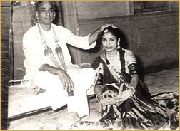 Guru Shambhu Maharaj - Dr. Maya Rao e-mail: stemdance@hotmail.com Photos: Govind Vidyarthi June 10, 2014 (This article first appeared in the Illustrated Weekly of India dated May 27, 1962) January 14, 1955: the day I was to commence my training under Guru Shambhu Maharaj, the greatest living exponent of Kathak. I was awaiting his arrival at the Akademi with mixed feelings of delight and anxiety. At 10am sharp a dark, handsome person clad in a sherwani and churidar outfit walked in, wafting the fragrance of attar. The scent of roses! How very reminiscent of the Moghul courts, I thought, and would have wandered on the wings of fancy to the setting of the romantic Moghul gardens but for the rude jerk I got when he said dryly, "Is this the student from the South who has come to receive training under me? I must say she has disturbed our old family setting and made me travel so far. Women are the same the world over." Not knowing why he talked in an accusing tone, I stood up meekly, folding my hands in a namaskar, for I guessed who he was. That was my first meeting with Shambhu Maharaj. Without waiting for any formal introduction he turned to me and said: "Listen, Maya, I am in my fifties now, and never before have I worked in an institution as an employee. Now I am to work in Bharatiya Kala Kendra. And, what is worse, this letter in a huge envelope from the Government thrusts a great responsibility on my shoulders. It says I have been chosen to impart training to Government of Indian scholars such as you, who want to specialize in the art of Kathak. The result is I have had to leave my ancestral home in Lucknow and come here to start a new life." I mustered courage to reply: "Maharaj, I have also come all the way from my home in Bangalore just to study under you. I did not know really that I was disturbing the peace of your retired life..." Patting me with paternal tenderness, he said: "No, my child, I am not annoyed. I felt sad to leave my people behind, so I had to scold someone. But, now I see that you are also in the same position and are willing to put up with difficulties for the sake of art. But remember one point always: I do not believe in the professor-student attitude of a college. I would rather you treat me as a guru." I wanted to correct his impression but did not dare to lose the sympathy I had just won. While we were talking he asked me where I had received my previous training and once again flared up when he heard that I had undergone training in the Jaipur style of Kathak. Born and brought up in the Lucknow gharana, Shambhu Maharaj does not acknowledge the greatness of any other style but his own. "So I shall have a tough time teaching you," he remarked, "as I will have to work like a sculptor who re-moulds statues, but my implements are so delicate, they are meant for ivory and not iron." Fortunately for me, he revised his opinion when he saw me dancing the next day and even complimented me on my rendering of Kathak. I was thrilled even more when, a few days later, he chose me to partner him in one of his dance items. I was hesitant to dance with him, but he gave me all assurance saying: "Maya, you look at me for guidance while dancing, I shall look at you for inspiration and God will look after both of us!" So it was, and the recital was a success. Since then I have danced many times with him, a distinction which I shall always cherish. ![]() Maharaj showing the nuances of the 'Ghunghat' to Maya Thus I met Shambhu Maharaj and spent several years with him, learning and working with him. Yet, I still marvel at his many-sided personality. Though, in the beginning I had many misgivings about studying under him, I have never found another teacher more sensitive and indulgent almost to the point of pampering his students. Shambhu Maharaj is today the distinguished holder of the country's most coveted honors - The Sangeet Natak Akademi award and the President's award. Still he is unaffected by success and is never tired of repeating that he owes his position to his brother Guru Achan Maharaj. At the Akademi Awards function Maharaj was seen in one of his glorious outfits - kinkhab achakan and chudidar pyjama - highlighted by diamond earrings and extra rings on his usually bejeweled fingers! But he was not his usual jovial self. He was silent with a melancholic face, till he went up to the dais and received his sanad and other honours. Then he retired to a corner of the dressing-room, opened the scroll, after touching his ears in reverence. And then, suddenly he burst out laughing to the astonishment of his admirers around: "The predictions of my brother and my uncle have come true. I wish they were here to share the honour." Saying this he recalled his early period of training. Youngest of the reputed trio of Lucknow gharana - comprising besides himself, Achan Maharaj and Lachu Maharaj - Shambhu was initiated into the art when he was 8 years old by his uncle, the celebrated Bindadin. After imparting training to Shambhu for 6 months, Bindadin passed away entrusting him to Achan Maharaj's care, saying, "This boy has great promise. Impart your full knowledge to him and he will bring credit to our gharana...." Accordingly Shambhu Maharaj was trained for a few years by Achan. "I know, as far as the art of dance was concerned, I was progressing very well under the inspired guidance of my brother." Shambhu Maharaj continued, "But I could not say the same of my studies..." He was not good in English for which he was being given special lessons at home. "I must have exasperated the teacher beyond measure," he said, "for even after a month's intensive coaching I was not sure whether I should say the bird laid a nest!" He added: "Both I believe are far from correct!" Naturally he was punished mercilessly by the teacher, till Achan Maharaj intervened and rescued him. "Don't maim my brother's arm," he told the tutor. "He may not know English but he will definitely bring honor to our family."