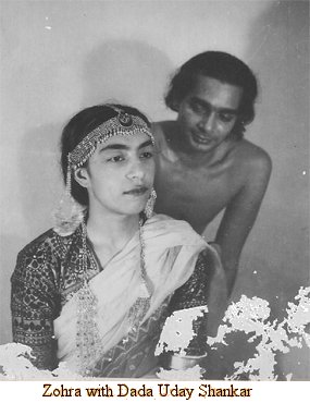 Not only she danced with and in Dada's production, she remained Dada Uday Shankar's main dance partner (like Simkie, later) and followed him all the way to Almora where she was a principal teacher and taught young boys like Sachin Shankar and Narendra Sharma, who had enrolled at the school. When the institution closed, Zohra married Kameshwar and shifted to Lahore, to start and run Zoresh Dance Institute, where my father Mohan Khokar enrolled. Thus, Zohra Ammi is my father's first guru too!