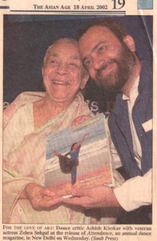 This association with films brought her to advertisements in the eighties and through the nineties, she has done scores of mainstream films with all top actors like Amitabh Bachchan (as his mother in Cheeni Kum), Dil Se (1998), Kal Ho Na Ho, Veer Zara, Mistress of Spice and last being Saawariya. To think she acted with Ranvir Kapoor's grandfather Prithvi shows Zohra Segal's selfless commitment to art for which she deserves the highest award - Bharat Ratna. She WAS a ratna of Bharat, indeed. She was bestowed Padma Vibhushan in 2010 She died of a cardiac arrest at 3.30pm on eve of Guru Purnima, in her daughter Kiran Segal's home in Delhi, on 10 July 2014. A legend is no more but her legend will live and inspire many. Ashish Mohan Khokar is a dance historian, critic and author of over 40 books on Indian arts and culture. He is the curator-inheritor of India's largest dance collection. He has mentored many youngsters and instituted awards and internships that help them. He also helped revive male solo dancing. His films on dance, discourses and critiques through 35 years of in-depth writings, as the Times of India dance critic and editing of India's only yearbook on dance - attendance - have contributed significantly to appreciation of the dance heritage and history. dancearchivesofindia.com / attendance-india.com Post your comments Please provide your name and email id along with your comment. All appropriate comments posted with name and email id in the blog will also be featured in the site. |
