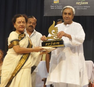 There was no fuss, the expressions on their faces was serene, the color of their clothes was pleasant and it was an evening of tranquility as we immersed ourselves in the soothing music of Kala Ramnath and Md Akram Khan on violin and tabla respectively. It was not only pleasant to hear them but also to see them as they presented numbers in raag Behag, raag Dipchandi and a song “dekho dekho re saiyaan” that Kala Ramnath also sang on request from the audience! She has been involved in the background score of many Hollywood films including ‘Blood Diamond.’ The final day of the fest saw the Guru Kelucharan Mohapatra Award and a purse of Rs. 50,000 bestowed on Odissi dancer Kumkum Mohanty and veteran stage and cinema actress Gloria Mohanty. Kumkum Mohanty spoke about starting Odissi Research Centre in 1984 for purpose of documentation and how her Guru Kelucharan Mohapatra composed many items for her, with Shankarabharanam Pallavi being composed during the year Ratibabu was born! She presently runs her institution Gita Gobinda in Bhubaneswar. Gloria Mohanty was trained in dance under Guru Kelucharan Mohapatra and in music at the National Music Association, Cuttack. Even now at 79 years of age, she is actively involved in film and television as a busy actress. The awards were given away by the Chief Minister, Shri Naveen Pattnaik, who said a true artiste belongs to the world and is an asset to civilization. Shanta Serbjeet Singh recalled how she had seen Kelucharan Mohapatra and Birju Maharaj perform at the Victoria Memorial at Kolkata before the monument was closed to such events. Prafulla Samal, Minister for Culture and Tourism, said Kelucharan Mohapatra deserves a posthumous Bharat Ratna.