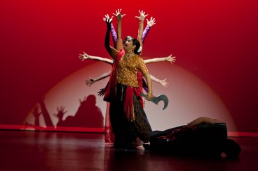 Viji Prakash is one of the pioneer gurus who brought dance to western hemisphere in the mid 70’s along with dancers like Rathna Kumar, Hema Rajagopalan and others. She was given the plaque by veteran Guru Rathna Kumar, artistic director of Anjali Center for Performing Arts. Rathna recalled the days in USA when anything Indian was so scarce. She mentioned that dance gurus such as Viji started to teach and perform to keep the traditions alive. The other dignitary who was present was Dr. Rajam Ramamurthy, a notable physician who holds Rita & William Head Distinguished professorship in Environmental and Developmental Neonatology, and is also the founder of Arathi School of Indian Dances in San Antonio, Texas since 1984. She remembered all great artists from La Meri to Viji, who pioneered Indian dances in the USA. Viji Prakash felt humbled by the honor extended by the dance community which included Prachi Dixit (Nupur Academy, Los Angeles, CA); Sujatha Vinjamuri (Kuchipudi Arts Academy, St. Louis); Malavika Venkatasubbaiah (Natyam Dance Academy, Calgary, Canada). Viji Prakash remembered her gurus and the musicians who worked with her. She thanked her family, especially her husband Prakash, who passed away recently. The 7th St. Louis Indian Dance and Music Festival curated by Guru Prasanna Kasthuri took place on June 12, 13, 14 in CHS auditorium and has become a tradition of celebration of Indian performing arts. On the first day, Surabhi Bharadwaj presented an enchanting performance with neat abhinaya and crisp movements. There were some acrobatic gimmicks to please the audience, which got her lots of applause. Prasanna Kasthuri presented “Rasa Gathi” which portrayed the theory of rasa concept through the illustrations from 10th century work of Dhananjaya’s Dasaroopaka. After going through a life altering surgery, his ability to bounce back and perform a full scale performance was amazing. Abhinaya was impeccable and he managed the nritta with ease. He excelled in the navarasa through the roles of Shiva-Parvati, Ravana, Rama, cannibals, Manmatha and Rathi. Last performance of the first day was a violin concert by Dr. Poorna Prajna. He took a while to settle himself into the groove, but soon took the audience along waves of calming and peaceful music. ![]() Prasanna Kasthuri ![]() Surabhi Bharadwaj The second day started with an invocation from Soorya Dance Company and students of Smitha Rajan. Rathna Kumar presented Shivoham, a collection of dances in Kuchipudi and Bharatanatyam. Expert choreography was evident in the way dancers moved across the stage. Talented male dancer Venugopal Josyula presented a light tandava piece with his inaugural Pasoonaam Pathim. His rendering of Shankara Srigiri was eye catching. Lifetime honoree Viji Prakash’s students presented well known Kannada devaranama Gajavadana beduve, with an inclusion of nritta for an interspersed swaravistara with impressive patterns. Ranjani mrudu pankaja lochani in ragamalika, a challenging piece for any dancer, was presented with grace and ease. Shakti Dance Company presented some of their best dancers to showcase the beauty of Goddess Tripurasundari. Pillangoviya Cheluva Krishna, a famous song on Lord Krishna’s playful youth, was energetic. Viji Prakash was successful in bringing out the strengths of the composition and skills of dancers well. Guru Sushma Mohan of Los Angeles presented age old "Tiruppavai", a collection of verses written by Tamil saint poetess Andal who lived in South India during the 8th century. Her presentation of Andal imagining herself as a cow-girl, collecting all girls at dawn during the Margazhi month (December-January) and inviting them to worship Krishna was pleasing. Additionally Samanvita Kasthuri impressed the audience as Mahavishnu. Shree Govani and Priya Patel added color through their crisp nritta and abhinaya. Guru Prachi Dixit from Los Angeles presented ‘The Sword and the Flute - the story of Kali and Krishna’ with a charming intensity. Her dancers impressed the audience with clear movements and inspiring abhinaya. Prachi Dixit herself performed and presented a valiant Durga with the support of young Khalil Alshar, who danced effectively to present the masculine roles of the production. Khalil was at ease with all different characters of the production. In this festival, Prachi Dixit’s show stood out in her highly professional approach. ![]() Prachi Dixit and group ![]() Blue Chakra Band The third day of the festival started off with the well conceived presentation of the famous Melkottai Vairamudi Utsav by Arathi School from Texas. Maya Angelou’s ‘Caged bird’ was a masterpiece presented with Bharatanatyam technique showcasing the flexibility of Indian classical dance. Dancers Rajam and Malathi Koli impressed everyone with their abhinaya of cotton picking slaves of Southern states. Adding a black dance group was appropriate to showcase the Emancipation Proclamation by Abe Lincoln. Guru Jinoo Varghese’s attempt to recreate Bible stories broke the boundaries of traditional Hindu mythologies and showcased the strength of the art form. With quick group formations, beautiful costumes and exquisite abhinaya, she produced a marvelous piece on stories of Jesus Christ. All the dancers presented a decent level of nritta and abhinaya. Jinoo’s direction of this 24-dancer group made a mark in the dance festival. Prasanna Kasthuri’s Dasavataram was a colorful presentation of the 10 incarnations of Lord Vishnu, with crisp choreography and appropriate formations. Enacting of Narasimha was fiery, and equally effective was the presentation of Kalki avatara. The Blue Chakra Band is a combination of Indian and American musicians. Lead singer Seema Kasthuri presented Gam gam Ganapathi with a Maharashtrian touch followed by an interesting mutual exchange of South Indian classical raga Kharaharapriya which was played on western music scale. Guitarist Frank Heyer played wonderful interlude