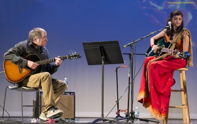 Viji Prakash honored with Soorya Lifetime Achievement Award - Anitha Nagendra Photos: Kanagamathy July 7, 2015 It was a colorful evening filled with dance and music gurus, art patrons and hundreds of dance and music students to felicitate one of the distinguished teachers of Indian classical dance in USA. Soorya Lifetime Achievement Award instituted by Soorya Performing Arts had a purse of $1000 and a plaque. This year’s awardee was Guru Viji Prakash, artistic director of Shakti Dance Company of Los Angeles. ![]() Viji Prakash receiving award