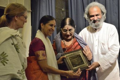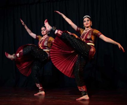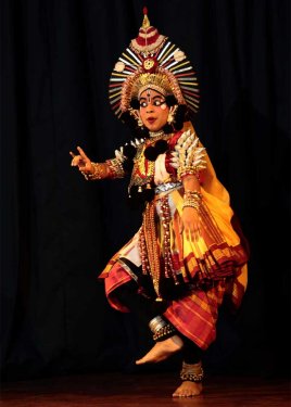 Then a one hour interactive seminar began with Khokar monitoring time and content. Many gurus, stars and icons were on stage together - Kanak Rele from Nalanda, Mumbai, Padmini Ravi, Usha Venkateswaran, Radha Shridhar, Vyjayanthi Kashi, Madhuri Upadhyay, Vijaya Marthanda, Mysore Nagaraj and youngsters like Sampada Nad and Tushar Bhatt. Each guru and teacher spoke clearly and to the point. The audience is always invited at the end of these discourses to interact but they seemed satisfied with the proceedings and spared everyone by not asking inane questions. Next, due to cyclone in Chennai last December, an attenDance awardee could not reach Bangalore, so S. Janaki of Sruti was handed her Mohan Khokar Award for art writing plaque by Dr. Kanak Rele. At the same time, attenDance 2017 issue was released. It's on GSP - Guru Shishya Parampara. After so many appetizers, the real dance by seniors began. The idea was not to merely dance and go but to engage audiences. So the process of teaching and creation of dance was shown. How eye exercises, how hand positions, how various limbs go into making dance art. While this format served lesser known Yakshagana style well, the same could not be said of Guru Radha Shridhar rambling in Bharatanatyam. Sisters Bianca Radhakrishnan and Natasha did very well in both demo and dance sections. Modern dance by Nritarutya was short and effective. The Garuda was magnificent, even if feathers were made of foam!