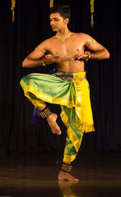 The second performance for the evening was by Singapore based Mohanapriyan Thavaraja. Alas! Yet another disappointing performance it was! Mohanapriyan was out of shape and added to that was his jarring costume which didn't do justice to whatever dance he was presenting. He opened his performance with the famous 'Shambu Natanam' before his main piece, the Tanjore Quartet varnam "Mohamana." The choreographic ideas fell short in his presentation. With repetitive sequences and exaggerated abhinaya, the varnam was not dealt with the finesse it holds. O.S. Arun's vocal rendering of the varnam was not in the least complimentary to the original version and what it must sound like for Bharatanatyam. He concluded his performance with a piece 'Anantham-Anandam' set to ragam Desh. Mohanapriyan is capable of putting up a better show.