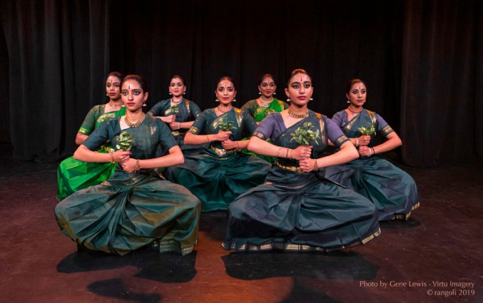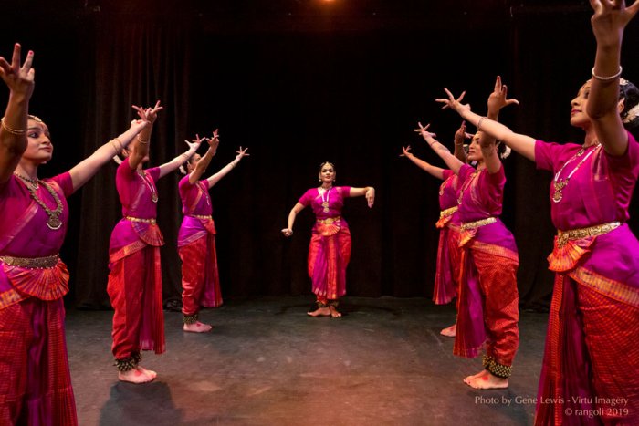 Rangoli Dance Company presents 'Viriboni' - Sudha Prakash e-mail: Photomagicroom@gmail.com Photos: Gene Lewis Virtu Imagery July 20, 2019 Rangoli Dance Company presented 'Viriboni' (a flower-like beauty), a collection of vintage varnam and new Bharatanatayam classical dance program on June 22nd in Los Angeles at the iconic and intimate Electric Lodge. The packed auditorium held an air of anticipation and expectation. Guru Malathi Iyengar usually elicits such an expectation in her presentations backed by years of carefully done research, months of preparation and lot of hard work by her dancers. She practices, teaches and promotes the art of Bharatanatyam in the greater Los Angeles area. ![]() In this varnam, Malathi presented seven of her senior dancers Anita Anand, Shivani and Vaishnavi Aysola, Amiya and Anya Prasad, Nishitha Viswanathan and Anshu Voruganti. Dressed in vibrant red with their ankle bells ringing rhythmically, the dancers fanned out in a flower pattern on the stage and presented the nuances of bhakthi and love for the lord in their hand movements, facial expressions and detailed dance adavus. It was a pleasure to watch the dancers showcase their artistry and grace with fluid movements in pure dance (nritta), beautiful, concise and rich emotions (abhinaya) and drama with expressive facial and hand expressions (natya) in individual segments embedded in the varnam. The choreography was exquisite in combining the dance segments with expert story telling. ![]() Dhruv Sumathi The show started with 'Ikshudandadhara,' a composition by B.R. Sheshadri beautifully presented by the male dancer Dhruv Sumathi who displayed his well-honed craft with effortless ease portraying Lord Ganesha, the son of Lord Shiva and Parvathi, who removes all obstacles and grants wisdom and knowledge to his devotees. Alarippu which invokes the cosmic energy through the geometrical lines and forces of the body was presented by Malathi Iyengar's daughter Lakshmi Iyengar and Ritika Iyer. Dhruv was a perfect choice of a dancer to present the melodic poetry 'Nagendra Haraya' composed by Adi Shankaracharya. The dancer portrayed the various forms of Lord Shiva, who is the embodiment of strength and compassion skillfully. The five syllables na-mah-shi-va-ya are representations of five elements that make up the world - earth, water, fire, air and space - and considered sacred by the ancient Hindu traditions. Dhruv displayed the vigor and vitality of Lord Shiva beautifully combining it with the expressions of compassion and love. He leaped, jumped and swirled displaying Shiva's energy and formlessness as the cosmic dancer Nataraja. His performance mesmerized the audience watching in sheer reverence. Malathi introduced author Judith Teitelman who read excerpts from her debut novel 'Guesthouse for Ganesha'. Judith has straddled the worlds of arts, literature and nonprofit sector working as a consultant and educator for more than three decades and has collaborated with Malathi in many of her dance presentations. Her writing has been published in various formats and publications. In the course of her book, Judith explores the world in which different cultures merge and differ in surprising ways. The book has a beautiful illustration of Ganesha dancing on a spindle to depict the story of Esther who relies on her masterful tailoring skills to navigate war-torn Europe and emigrate to India along with her traveling companion and the novel's narrator Ganesha. The story is woven against the backdrops of the European Holocaust and the Hindu 'Kali Yuga' (the age of darkness) when human civilization disintegrates spiritually. The novel is a tale of love, loss and reclaimed spirit. ![]() Music for the performance was recorded in India and vivid and elegant lighting was provided by Eileen Cooley and set design was by Suresh Iyengar. The event ended with a beautiful reception in the lobby. Sudha Prakash is a freelance reporter based in Los Angeles and writes about art, culture and social happenings in the greater Los Angeles area for many years. Through her writing, she wants to spread awareness about Indian arts and culture in the Western United States. |