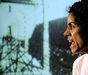 a one-woman show, a powerful rendering by Jyoti Dogra. The TV screens are